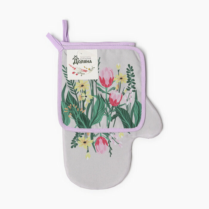Кухонный набор Доляна "Тюльпаны" прихватка 17х17 см, варежка 25х16 см, 100% п/э