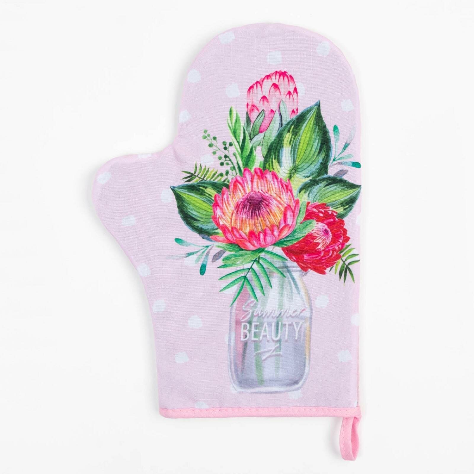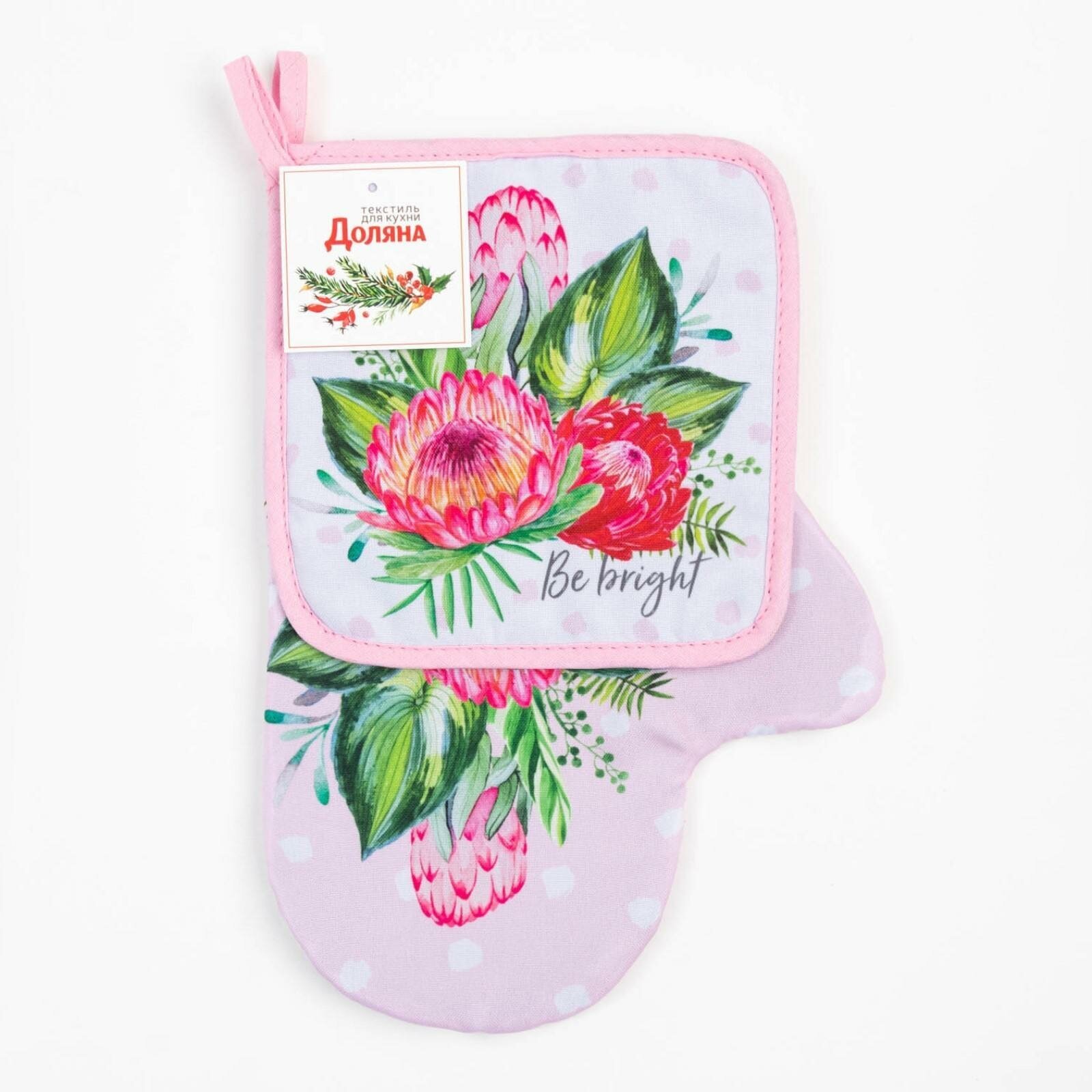 Кухонный набор 2 пр. Доляна "Цветы" прихватка 17*17см, Варежка-прихватка 26*16см,100%хл, 10513419
