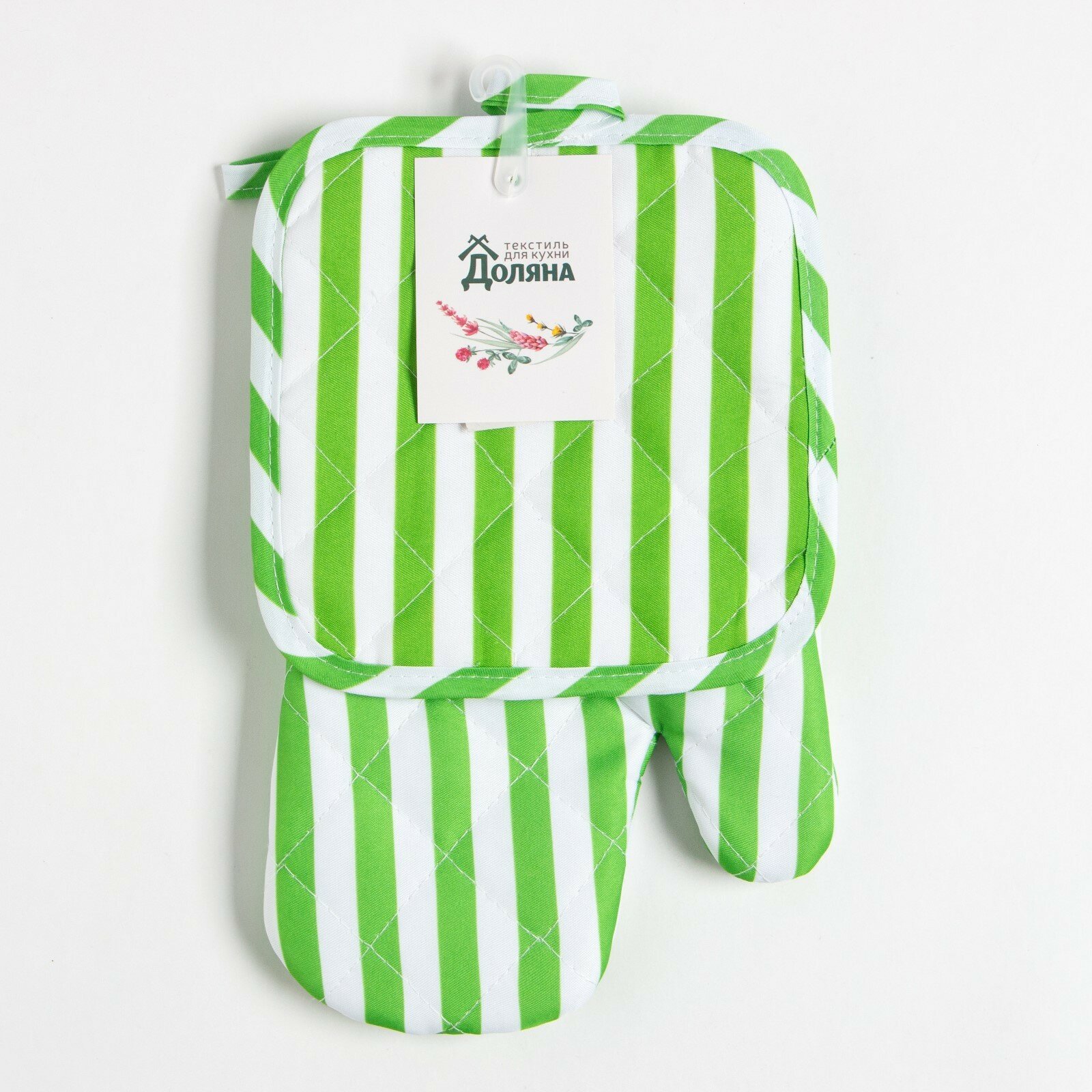 Купить Кухонный набор Доляна цвет зелёный, прихватка 17х17 см, варежка 26х16 см, 100% п/э