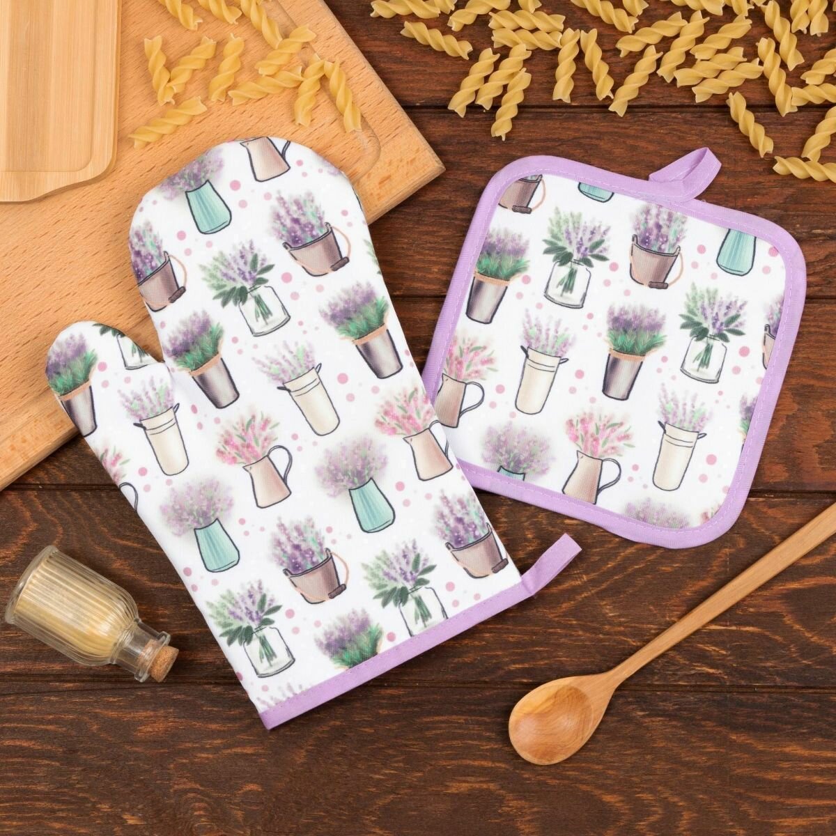 Купить Кухонный набор Доляна "Прованс" , прихватка 17*17 см, рукавица 26*16 см,100% п/э