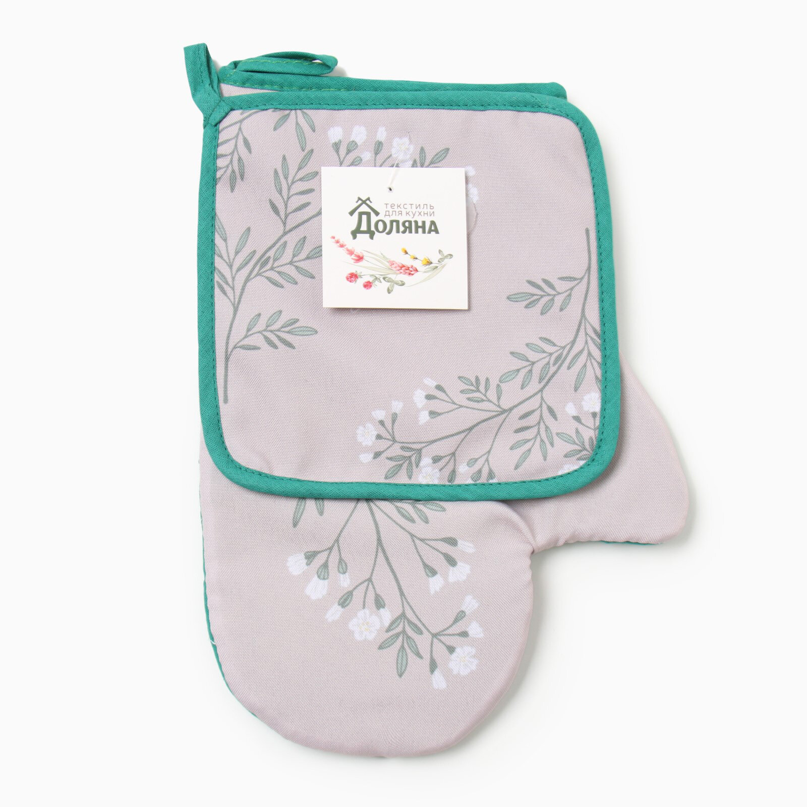 Набор кухонный Доляна "Эвкалипт": варежка 20х27 см, прихватка 19х19 см, 100% хлопок