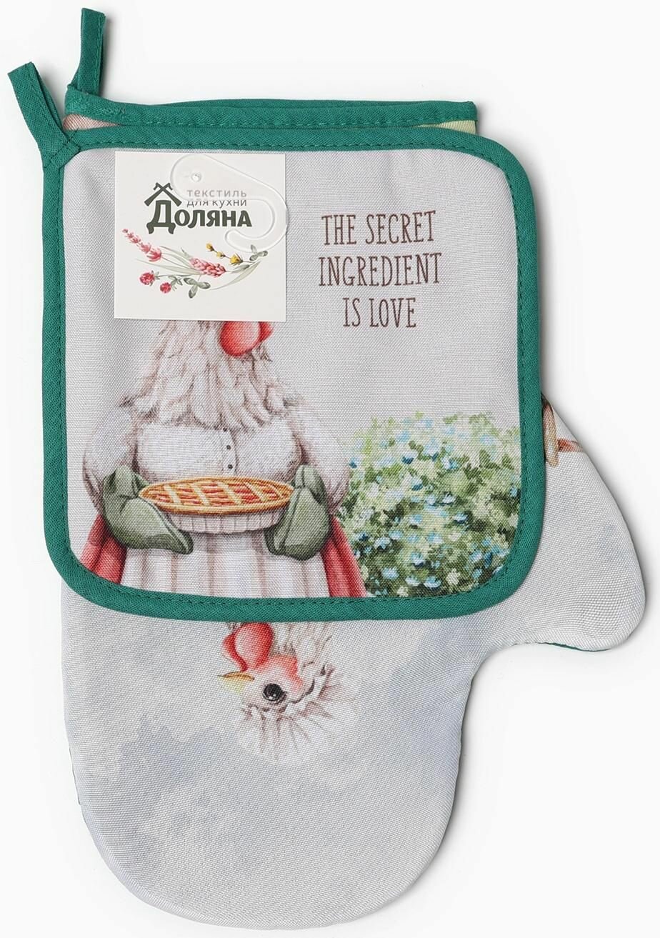 Набор кухонный Доляна "Душевная кухня": варежка 20х28 см, прихватка 19х19 см, 50% хлопок, 50% п/э, 9462713