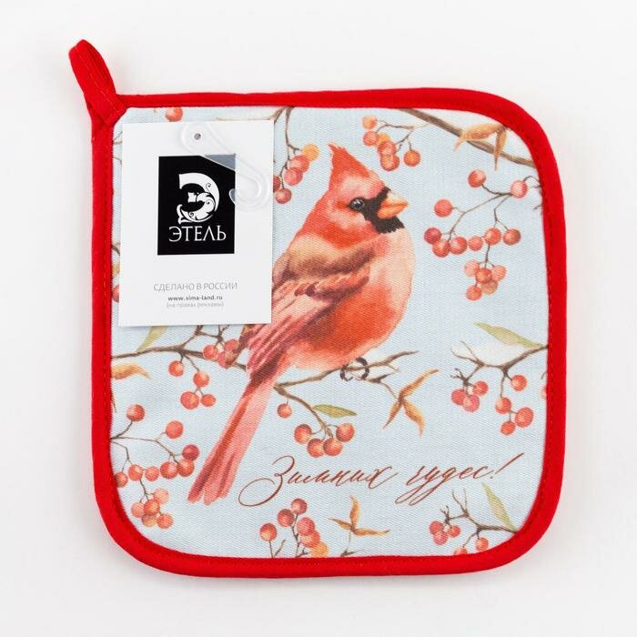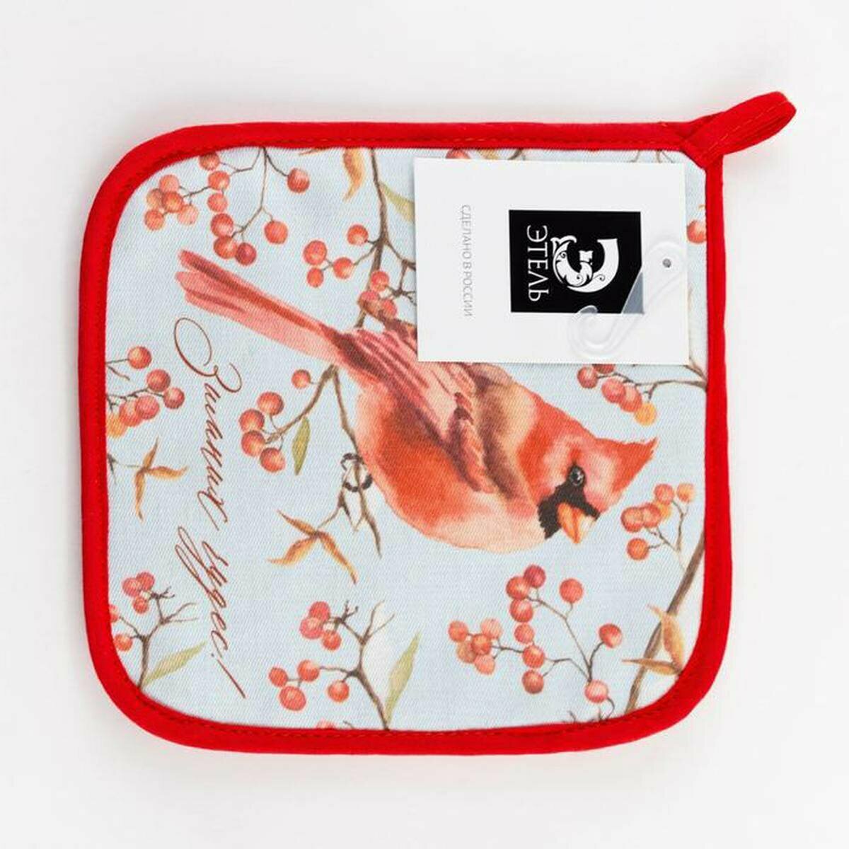 Купить Новый год. Прихватка "Winter birds" 19х19см, саржа, 100% х/л, ватин 250г/м2 50