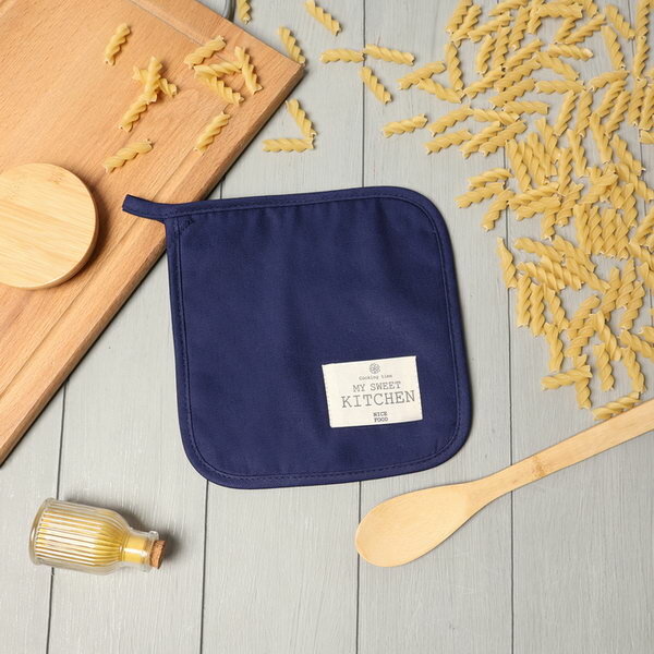 Купить Прихватка"Kitchen" цв. синий, 19х19 саржа,100% х/л, сезон: весна