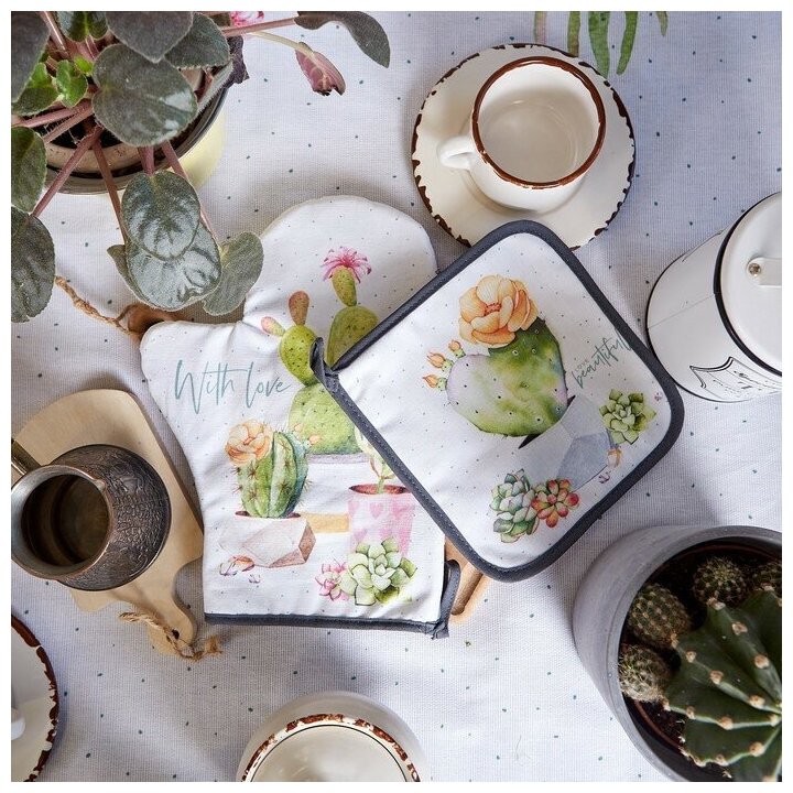 Варежка-прихватка "Ботанический сад" 20х28см, саржа, 100% хлопок, ватин 250г/м2