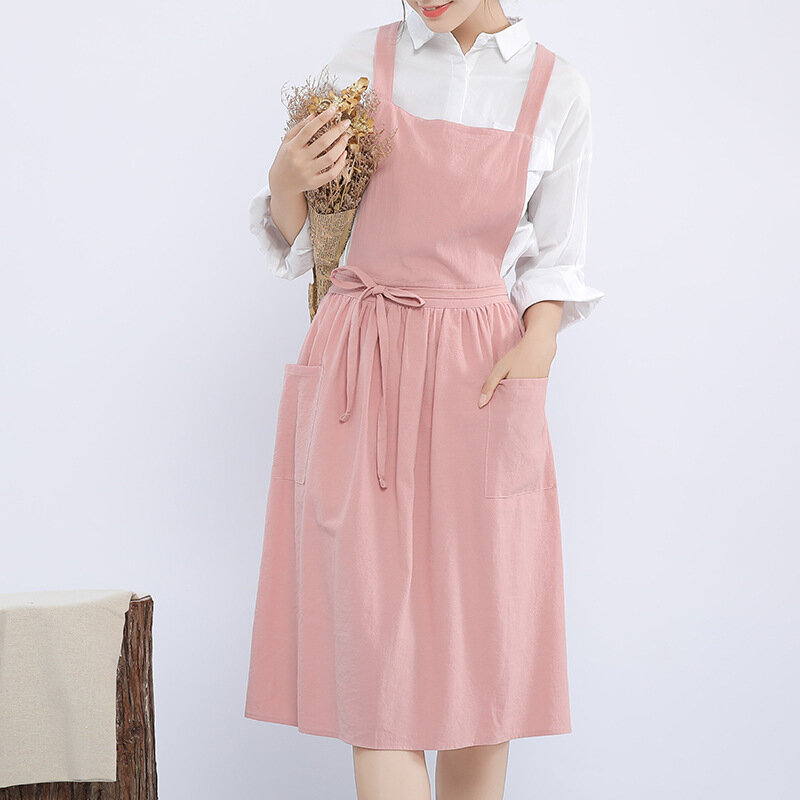 Купить Фартук Senyue Amazon, хлопок и лен, японский стиль, розовый, с цветочным принтом
