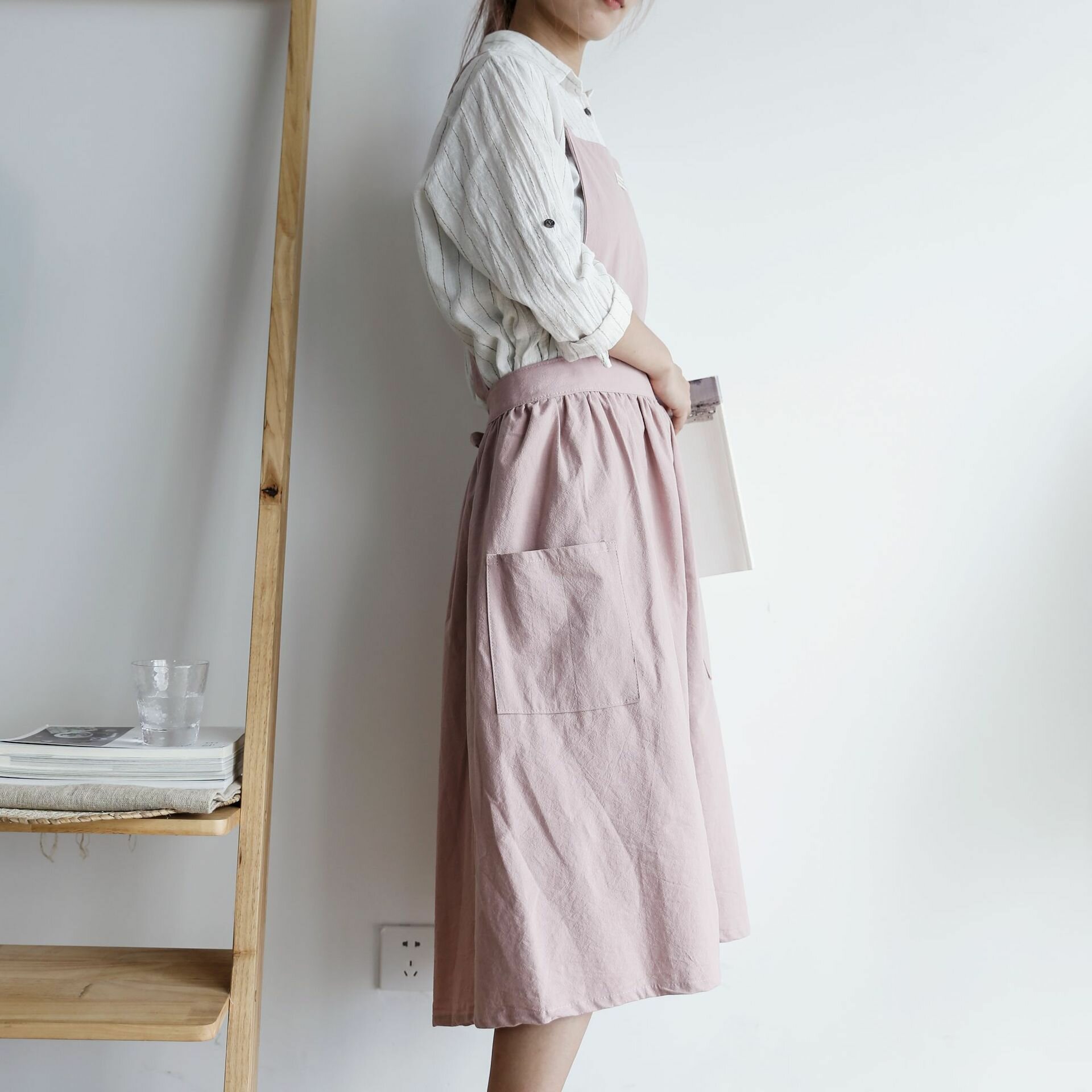 Фартук кухонный Other, современный минимализм, хлопок, лен, розовый, 100%, без рукавов