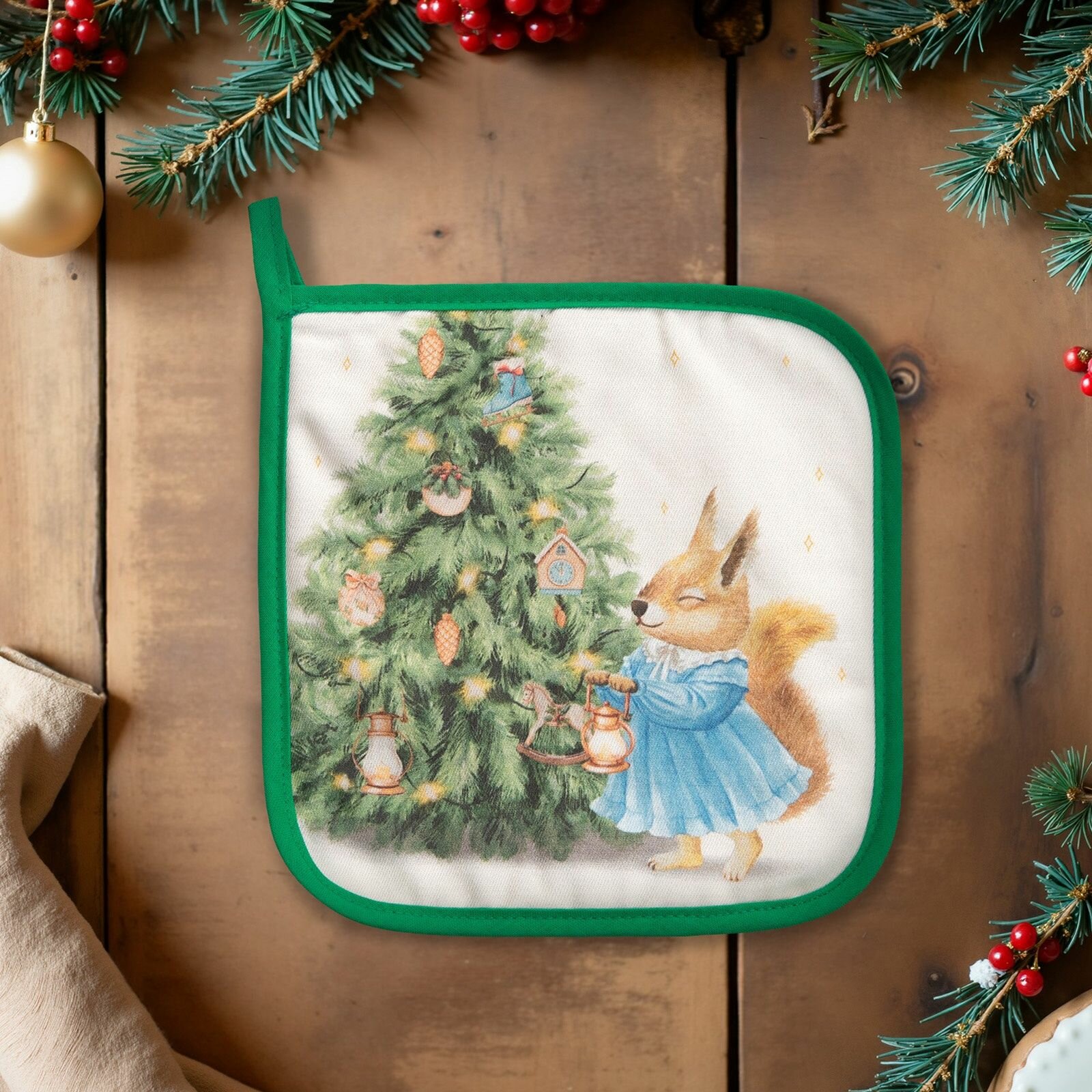 Набор кухонный "Сказочная ёлка" Варежка-прихватка новогодняя 15х28см, прихватка 19х19см,100%хл