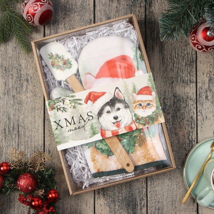Купить Новый год. Набор подарочный Доляна "Кошечка" : варежка-прихватка, лопатка силикон