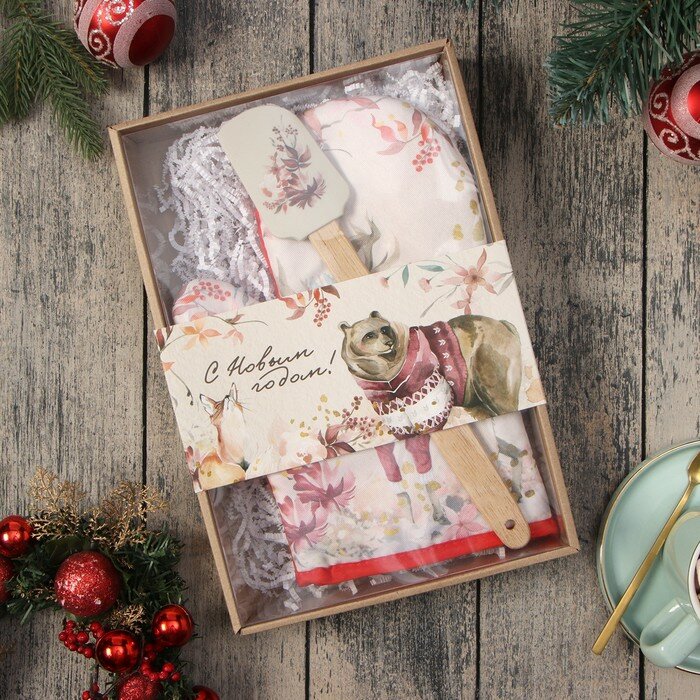 Новый год. Набор подарочный Доляна "Красивая жизнь" : варежка-прихватка, лопатка силикон