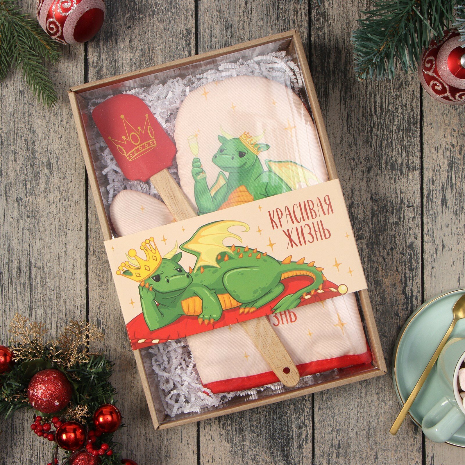 Купить Новый год. Набор подарочный Доляна "Красивая жизнь" : варежка-прихватка, лопатка силикон