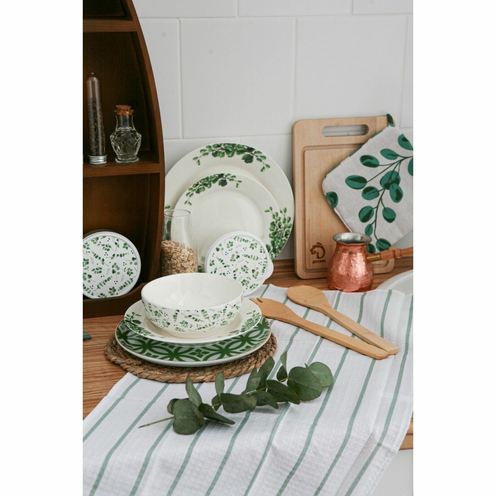 СохранитьНабор кухонный Доляна Эвкалипт": варежка 20х27 см, прихватка 19х19 см, 100% хлопок интересное: