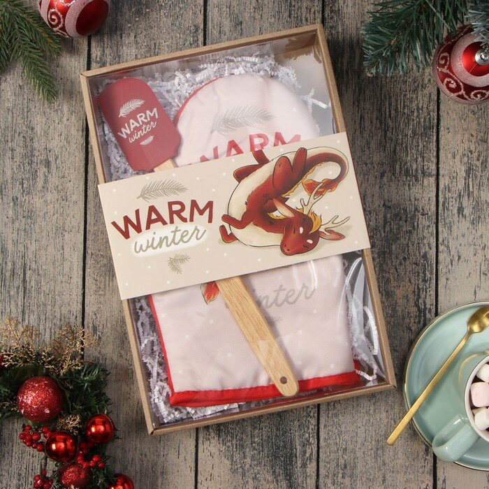 Купить Новый год. Набор подарочный Доляна Warm winter : варежка-прихватка, лопатка силикон
