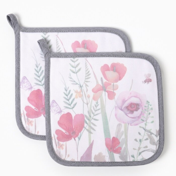Набор прихваток Этель Рoppy fields 2 шт, 19х19 саржа,100% х/л, ватин 250г/м2