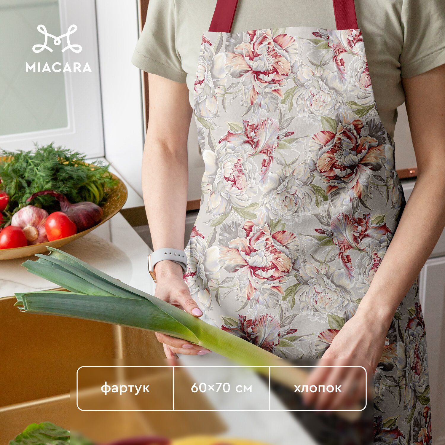 Купить Mia Cara Фартук кухонный женский 60х70 Душистый пион 30200-1