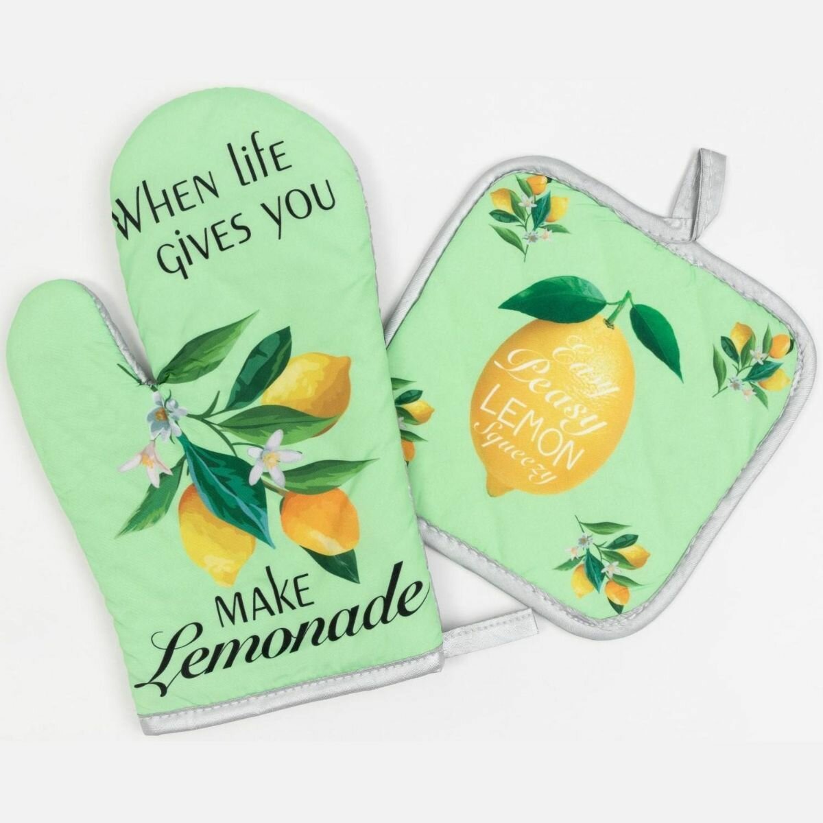 Купить Кухонный набор Доляна Lemon, прихватка 17*17 см, рукавица 26*16 см,100% п/э