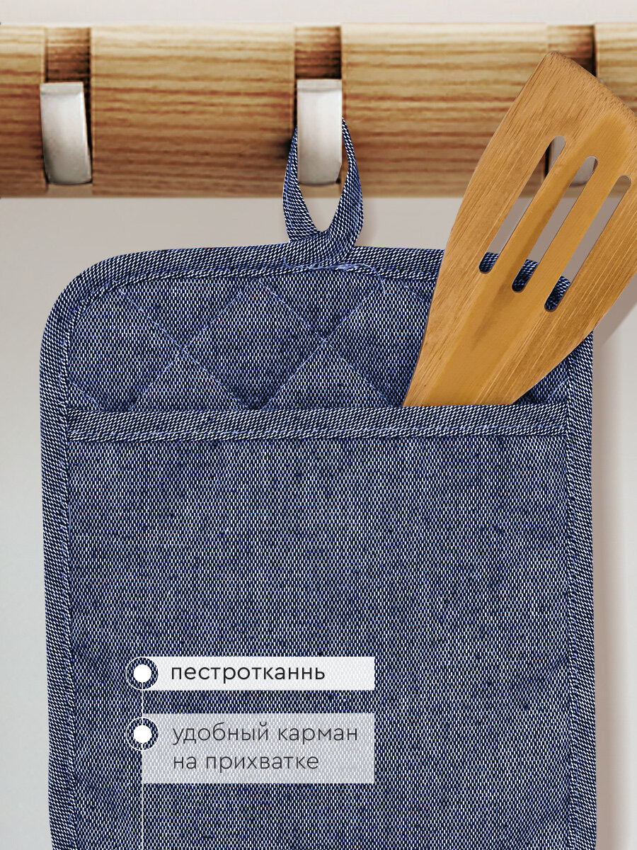 Набор кухонный Василиса Рукавица и прихватка с карманом, хлопок 100%, Синий интересное: