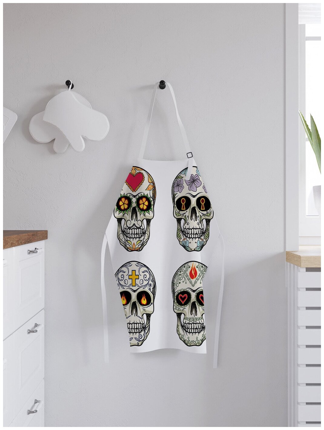 Фартук кухонный "Череп эмо", универсальный размер для женщин и мужчин, JoyArty