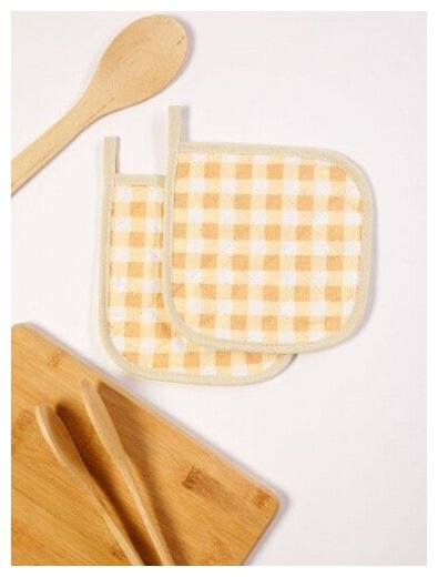 Купить Набор прихваток Мари Санна "Клетка" (желт.) 9567-1 стёганые (18х18 - 2 шт.)