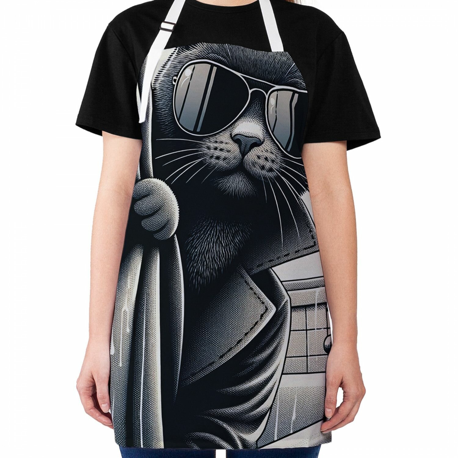 Фартук кухонный "Кот шпион в ванной", универсальный размер для женщин и мужчин, JoyArty интересное: