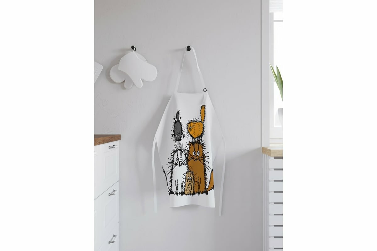 Фартук кухонный "Семейство котов", универсальный размер для женщин и мужчин, JoyArty интересное: