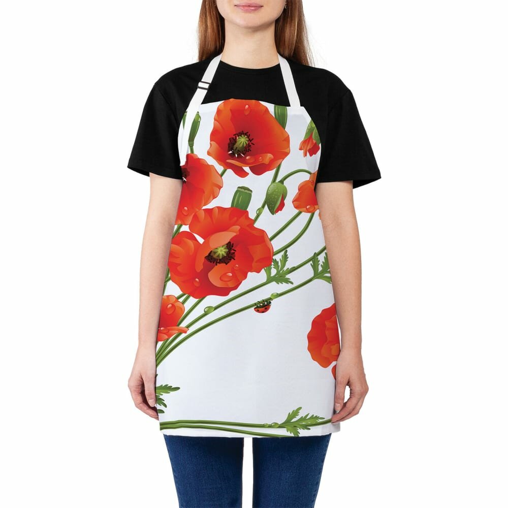 Фартук кухонный "Красные маки", универсальный размер для женщин и мужчин, JoyArty