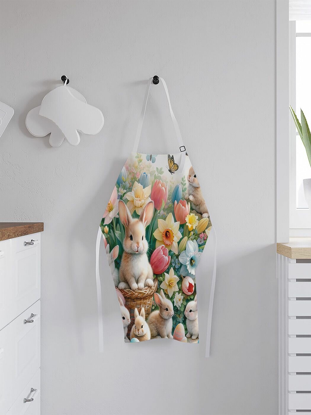 Купить Фартук кухонный "Кролики в цветах", универсальный размер для женщин и мужчин, JoyArty