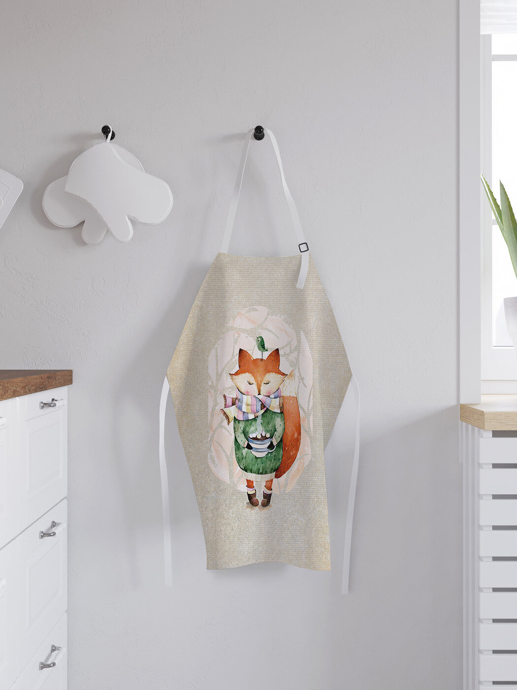 Фартук кухонный "Уютный лисенок", универсальный размер для женщин и мужчин, JoyArty, серия Новый год интересное: