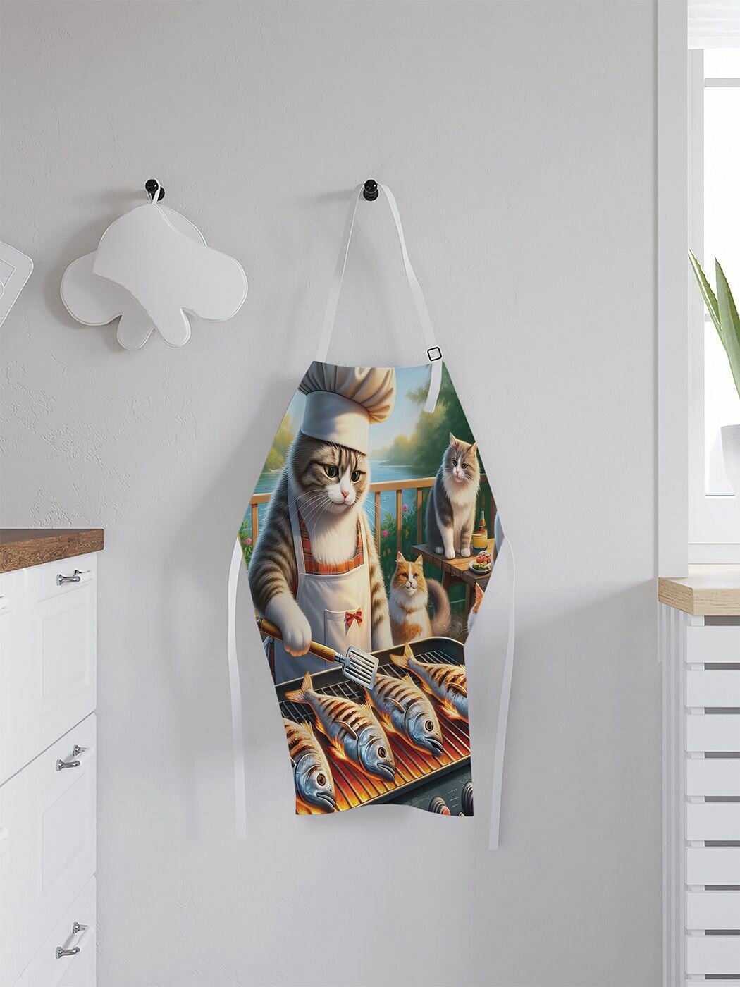 Купить Фартук кухонный "Кошачье барбекю", универсальный размер для женщин и мужчин, JoyArty