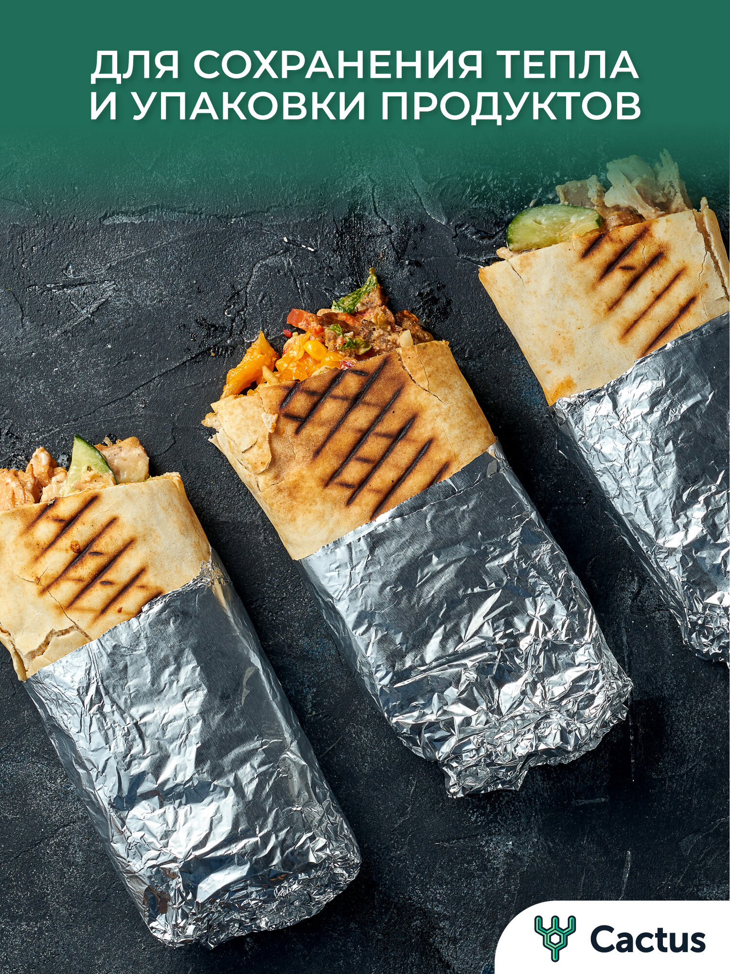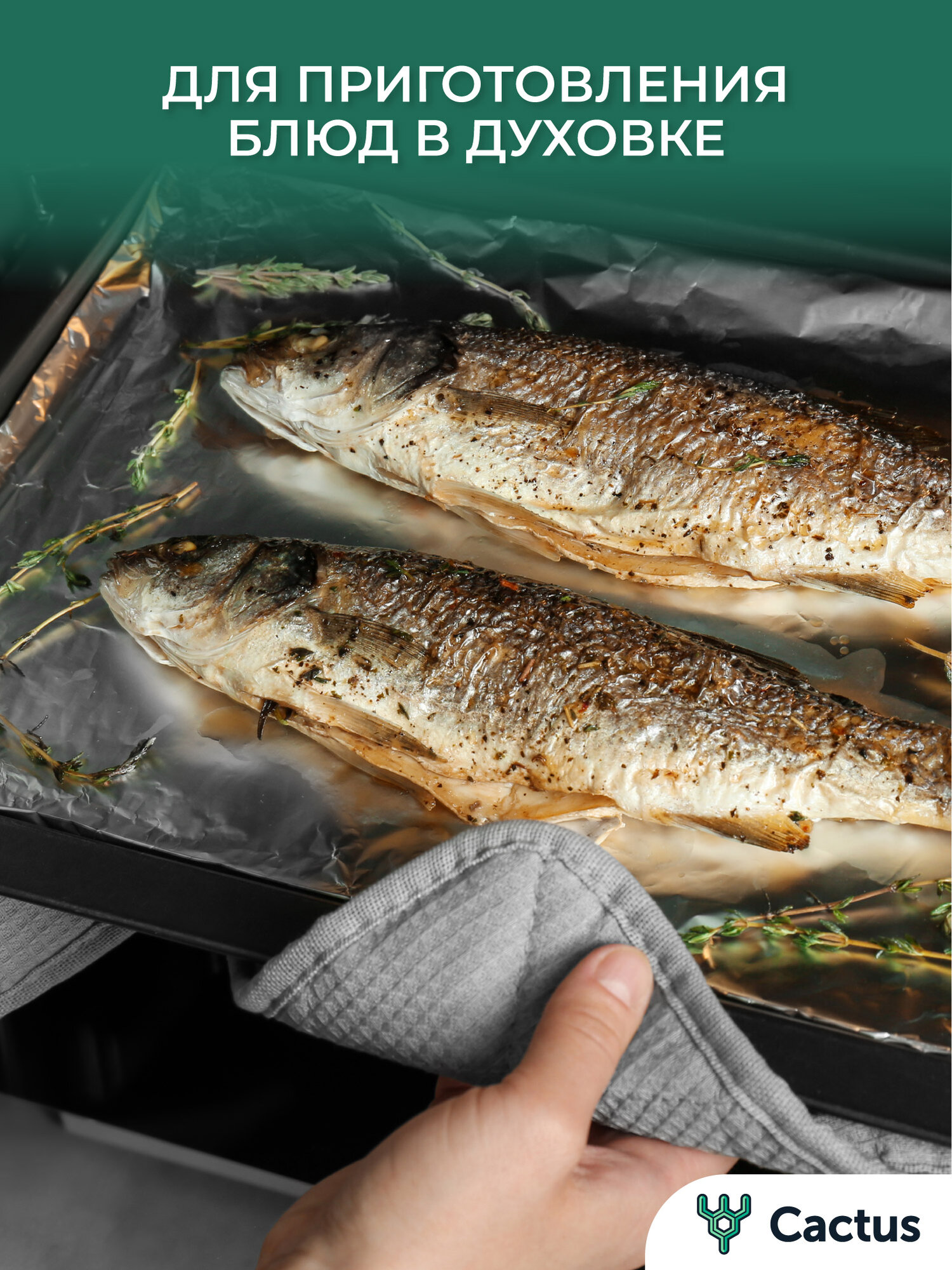 Фольга пищевая для гриля, запекания, для кухни алюминиевая прочная для приготовления пищи 20 мкм, 50 м х 44 см, Cactus интересное: