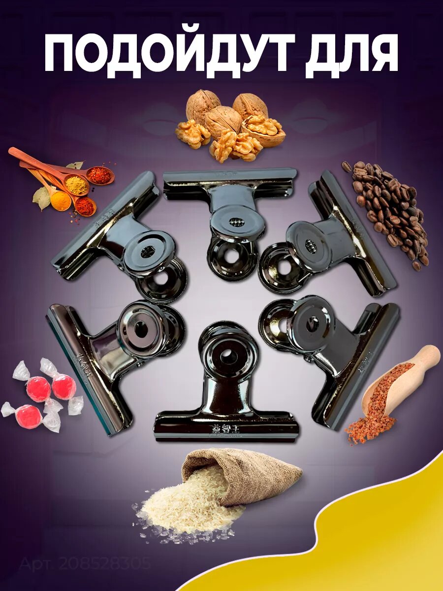 Зажимы для пакетов кухонные металлические 6 шт прищепки многоразовые крепкие 50 мм, для творчества, для шитья интересное: