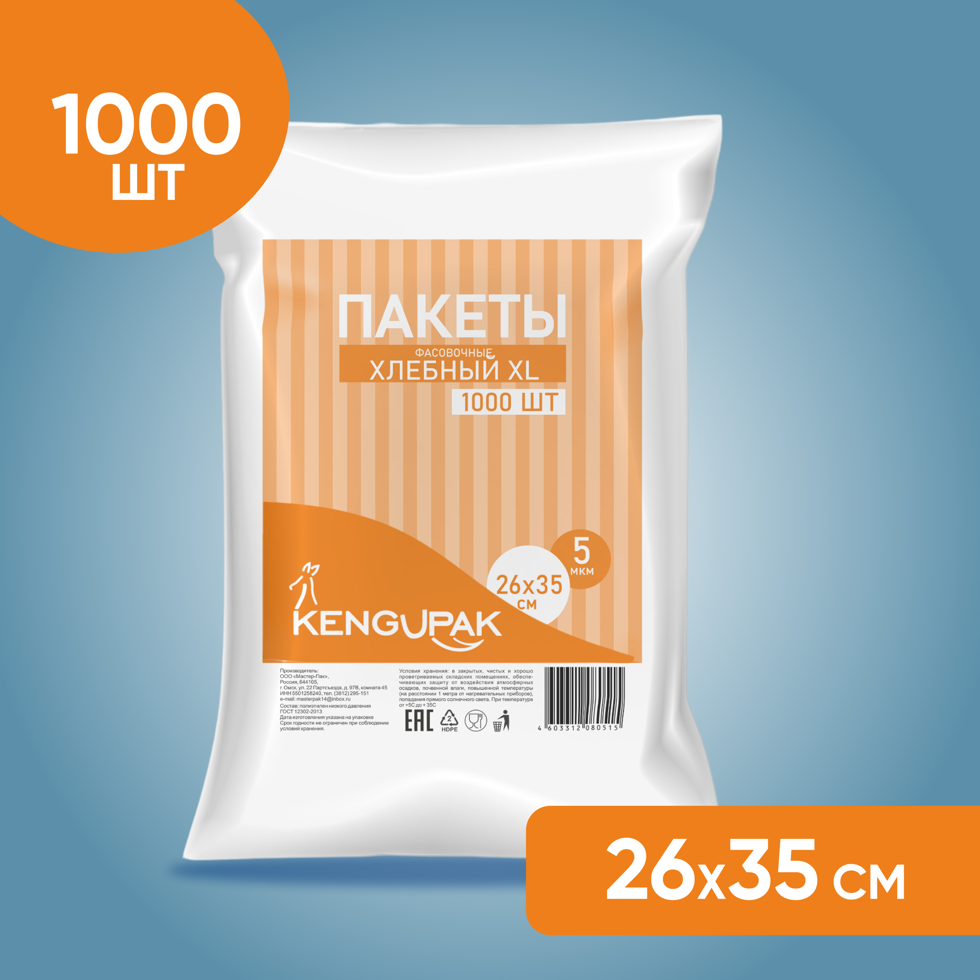 Пакет фасовочный, пищевой, полиэтиленовый, для хранения продуктов KENGUPAK "Хлебный" стандартный 26*35 см, 5 мкм, 1000 шт. интересное: