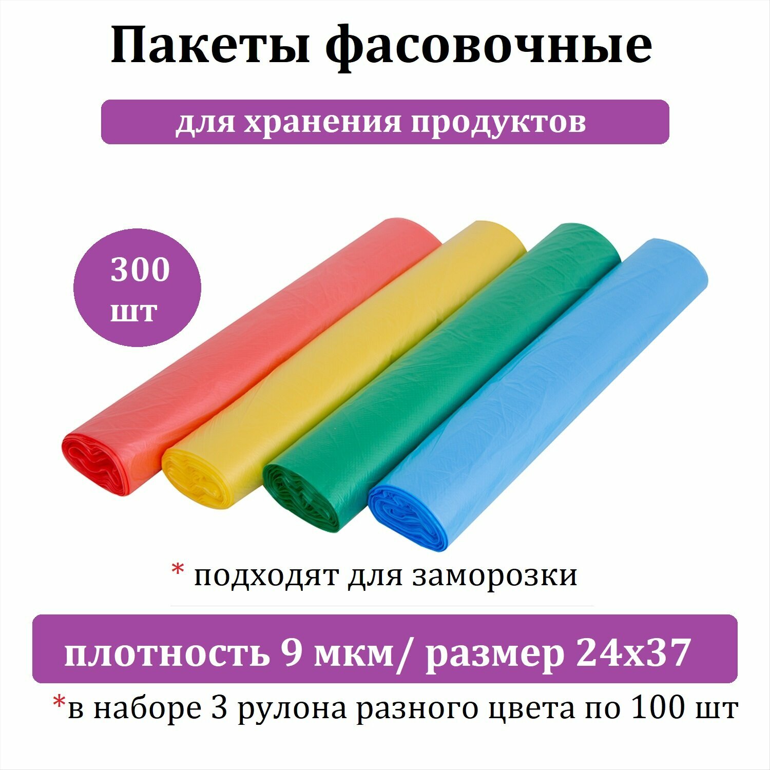Пакеты для продуктов цветные 24х37, 3 разноцветных рулона по 100 шт интересное: