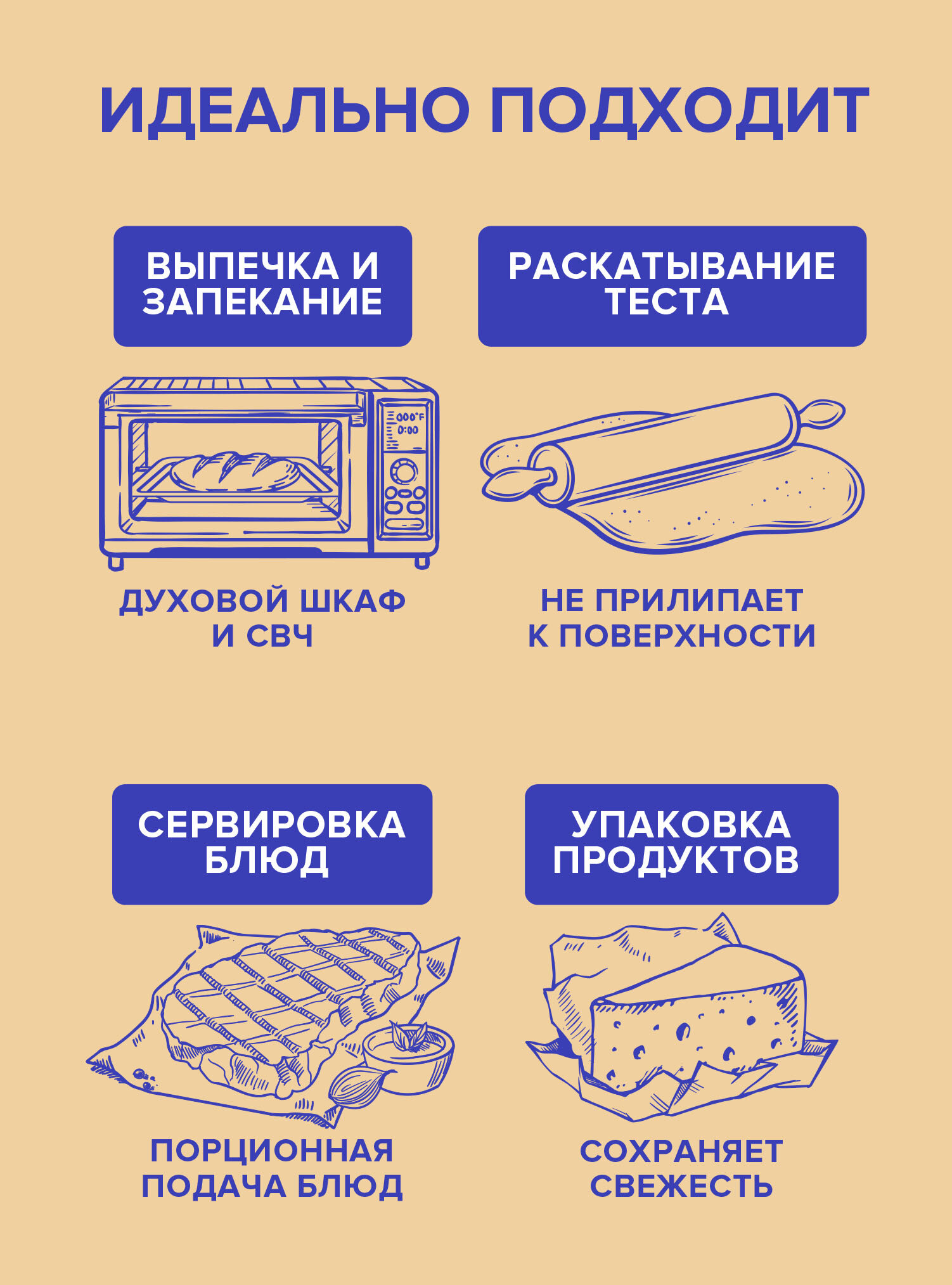 СохранитьБумага (пергамент) для выпечки Lomberta 8 м, 1 рулон 38 см, многоразовая, крафт, силиконизированная интересное: