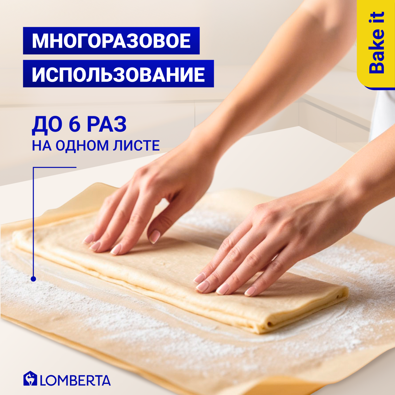Бумага (пергамент) для выпечки Lomberta 60 листов, 38 х 42 см, профессиональная многоразовая, силиконизированная