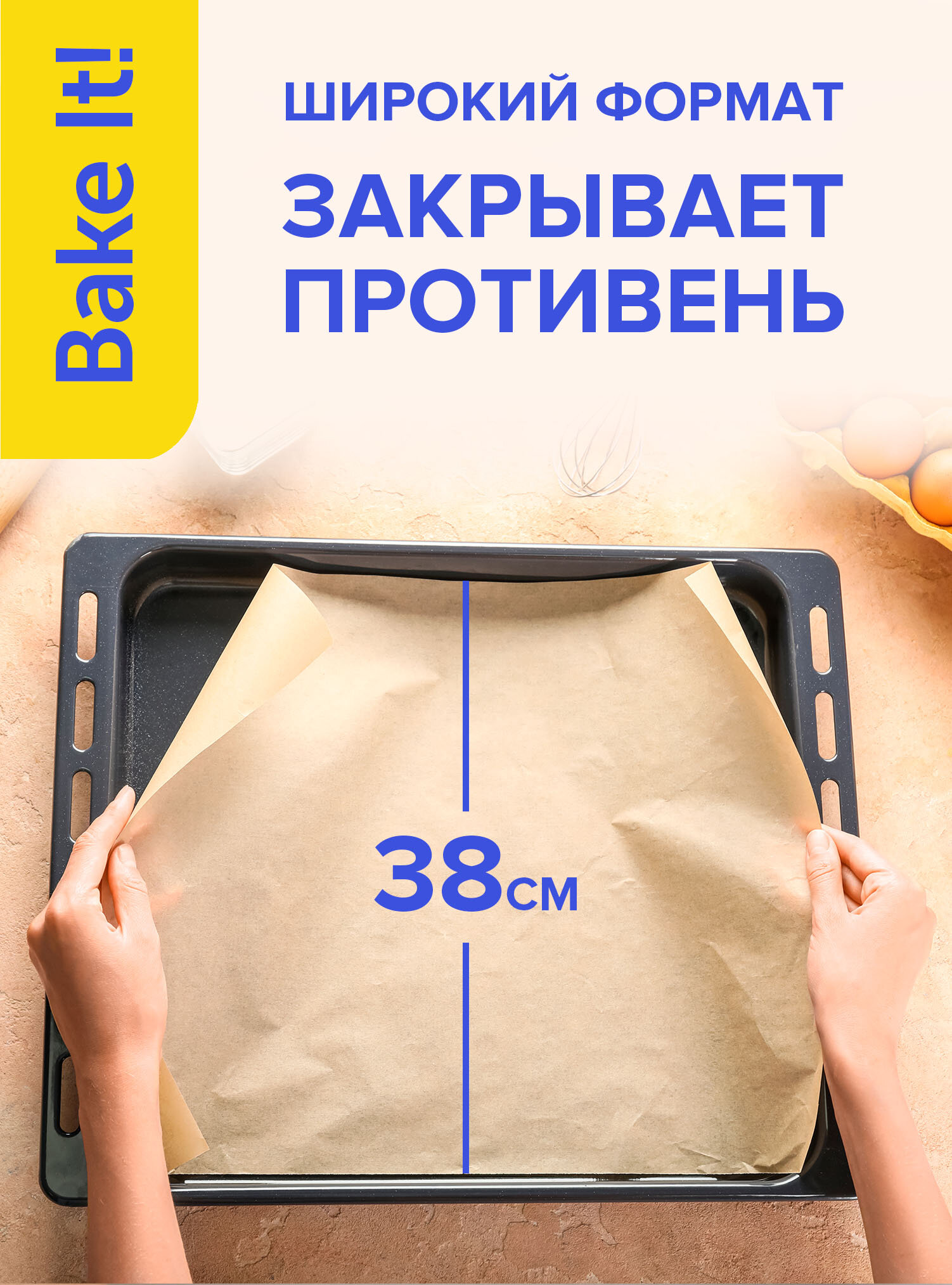 Бумага (пергамент) для выпечки Lomberta 50 м, 1 рулон 38 см многоразовая крафт, силиконизированная