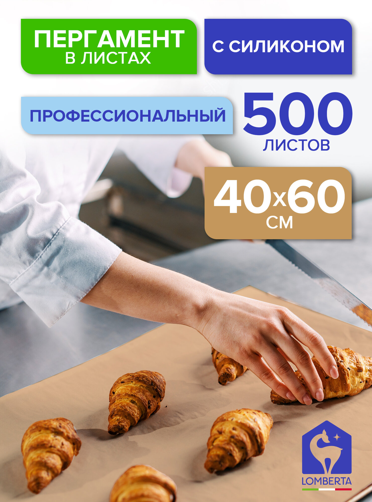 Бумага (пергамент) для выпечки Lomberta 60 листов, 38 х 42 см, профессиональная многоразовая, силиконизированная