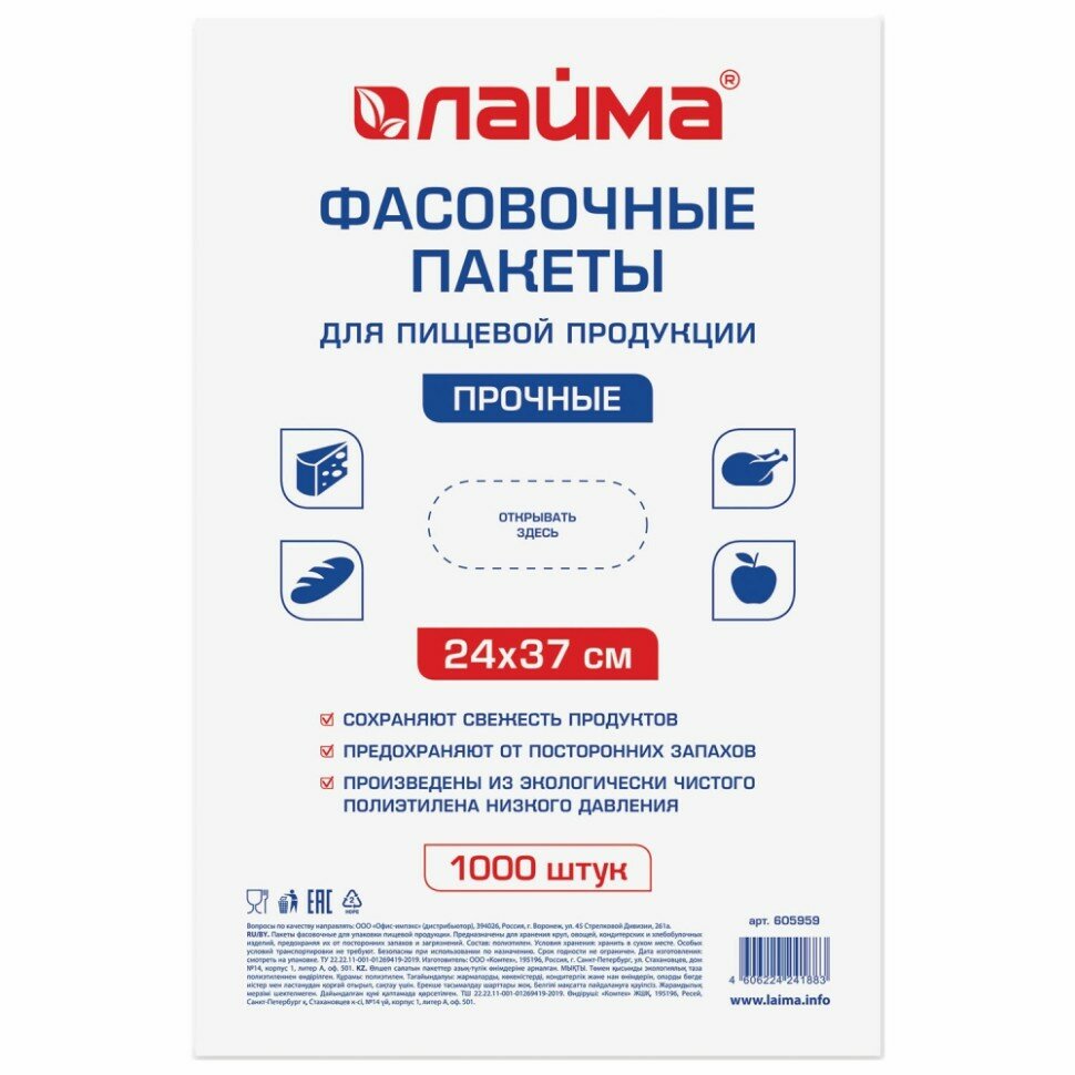 СохранитьПакеты фасовочные Лайма , 24х37 см, 10 мкм, ПНД, 1000 шт/уп интересное: