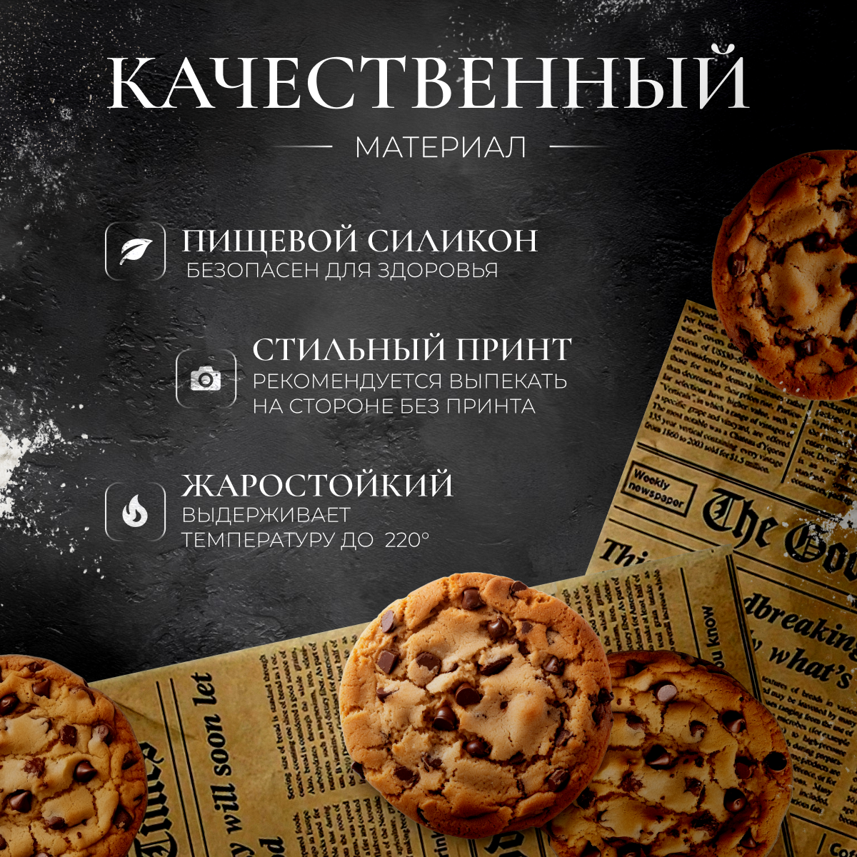 Бумага для выпечки силиконизированная c рисунком газета 10м х 30см многоразовая крафт интересное: