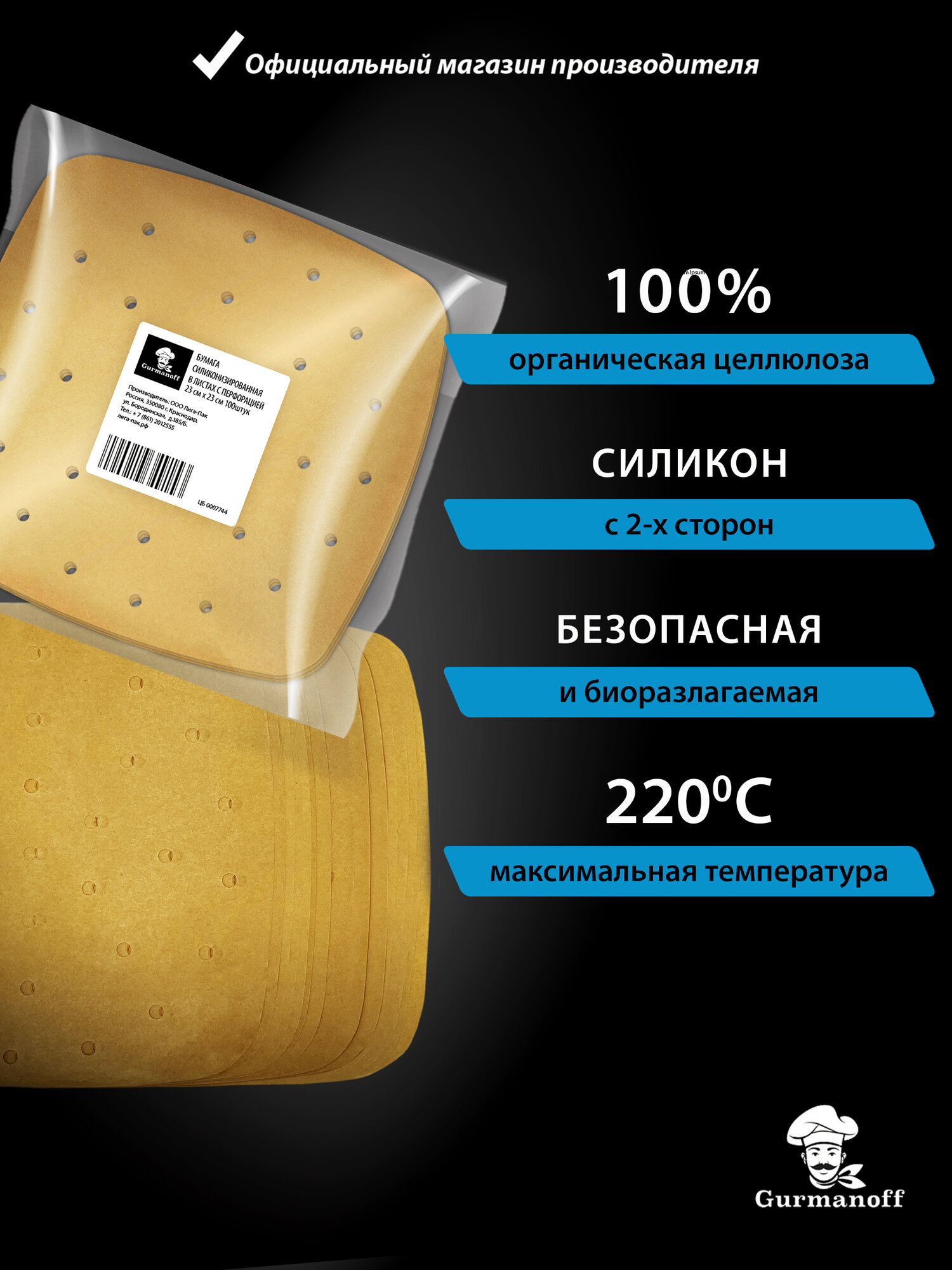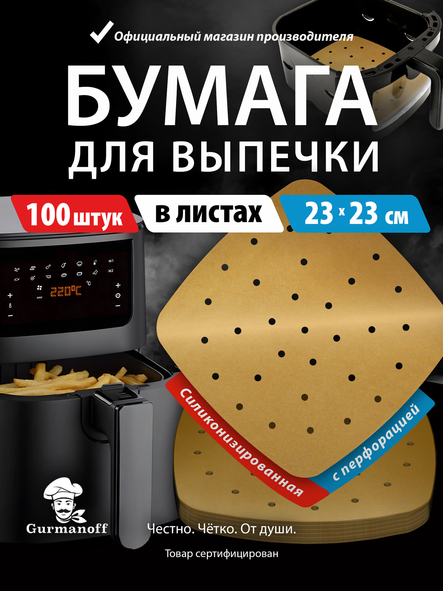 Бумага для выпечки силиконизированная / пергамент для аэрогриля в листах квадратный 23 см интересное: