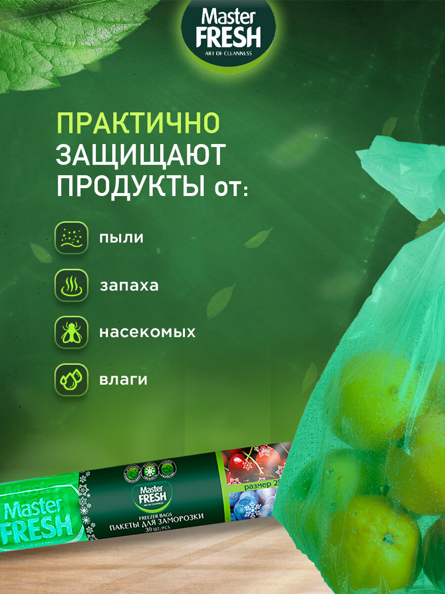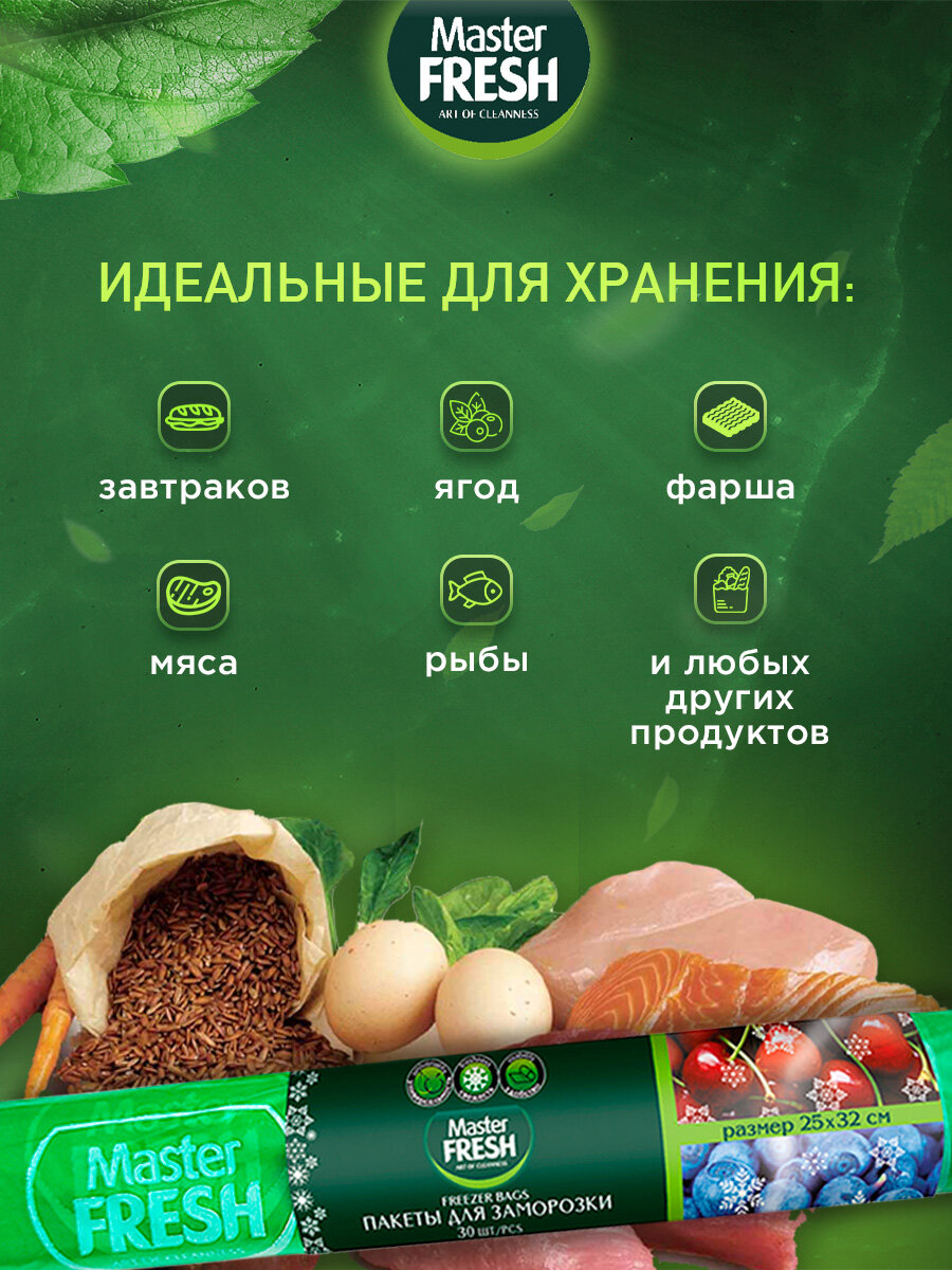 Пакеты фасовочные Master Fresh для заморозки прочные 30шт 20мкр*6шт интересное: