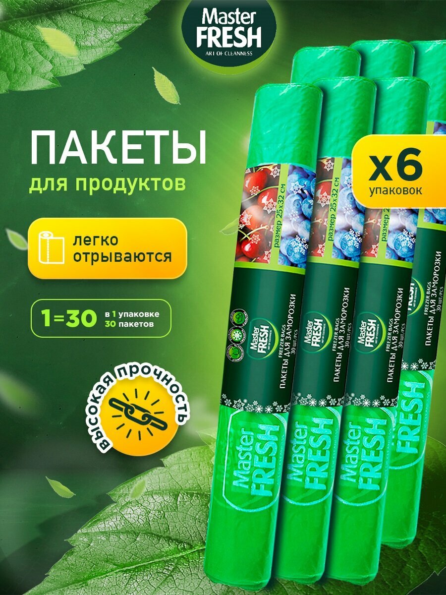 Купить Пакеты фасовочные Master Fresh для заморозки прочные 30шт 20мкр*6шт