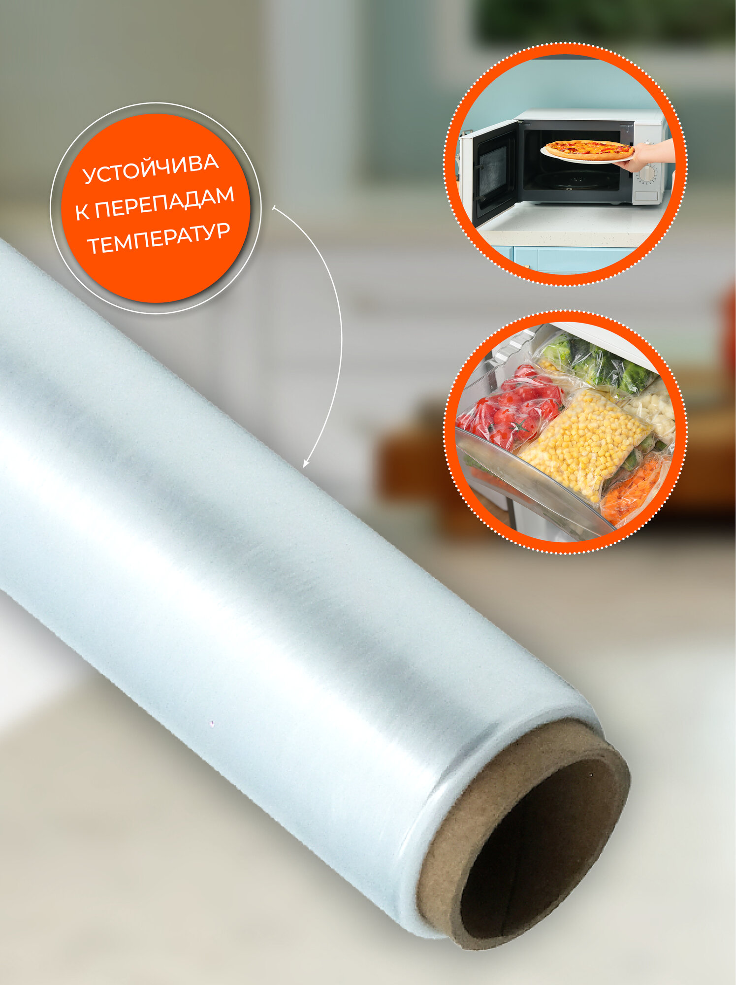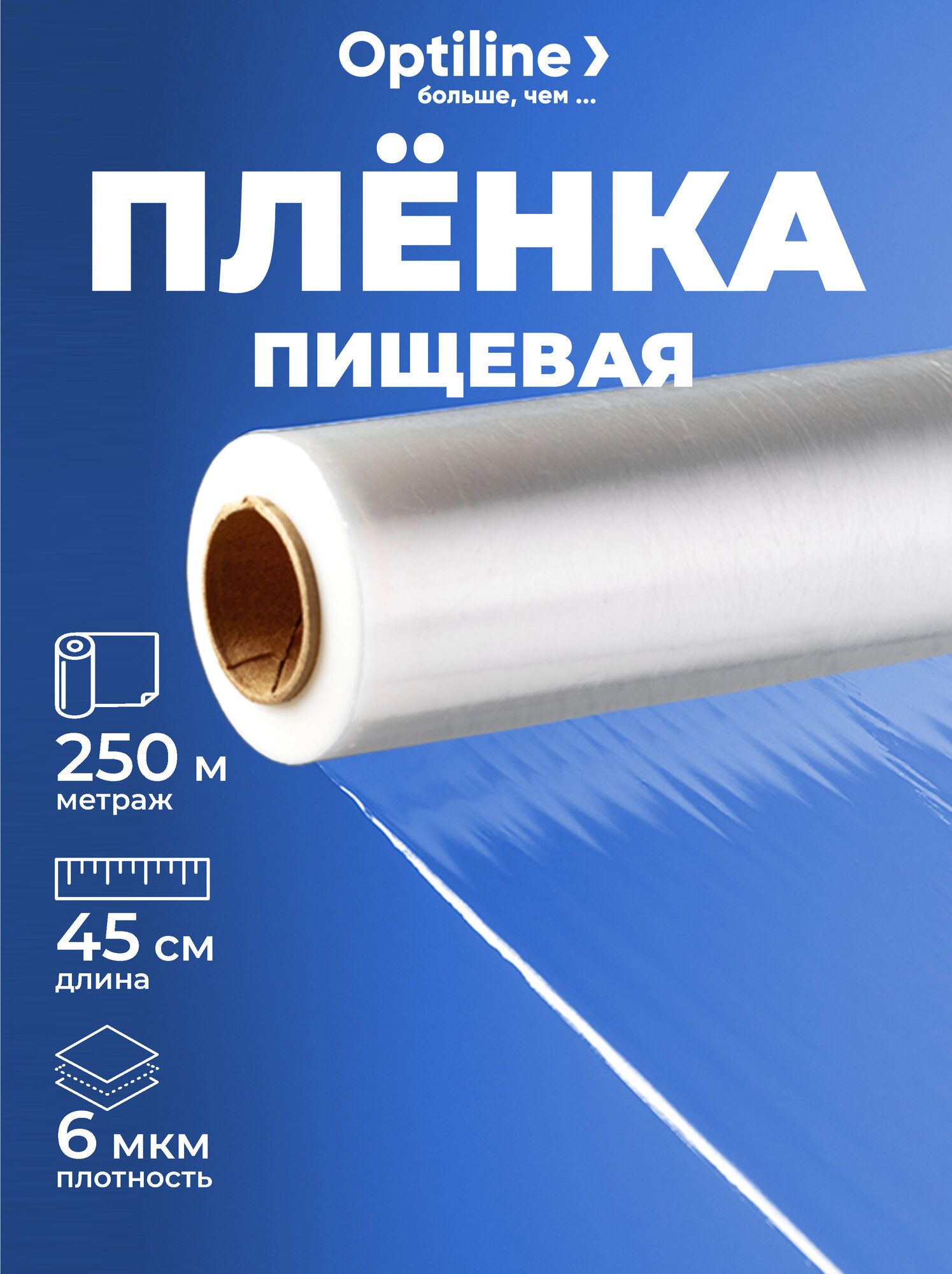 Пленка пищевая 45 см / 6 мкм полиэтиленовая прозрачная, Optiline, 250 м в рулоне интересное: