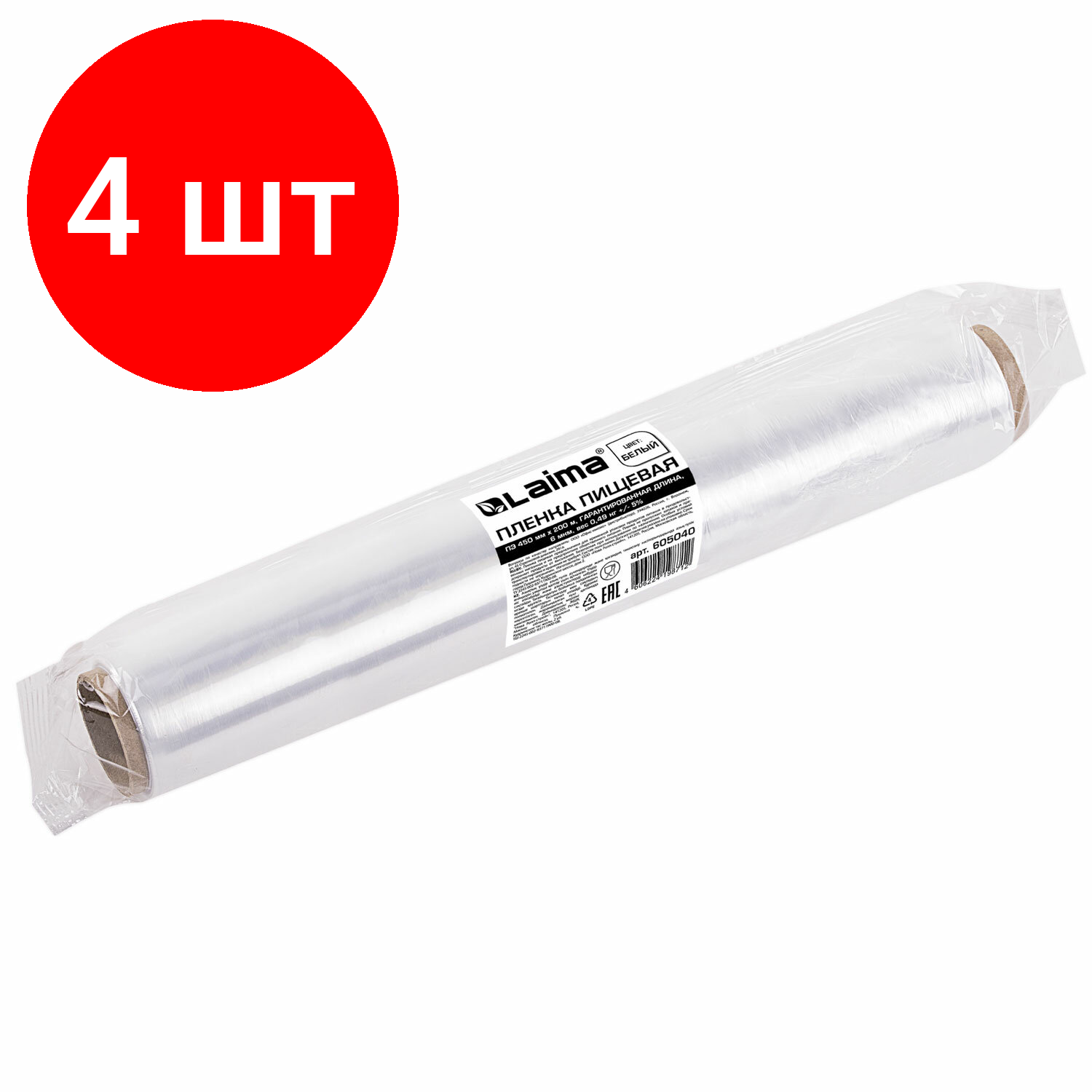 Купить Комплект 4 шт, Пленка пищевая ПЭ 450 мм х 200 м, гарантированная длина, белая, 6 мкм, вес 0.49 кг +- 5%, LAIMA, 605040