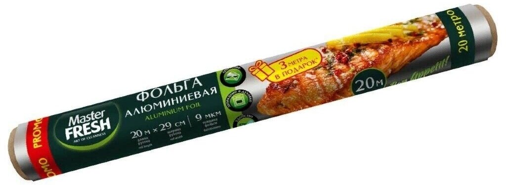 Фольга пищевая Master Fresh в рулоне алюминий длина 20м ширина 29см 9 мкм. интересное: