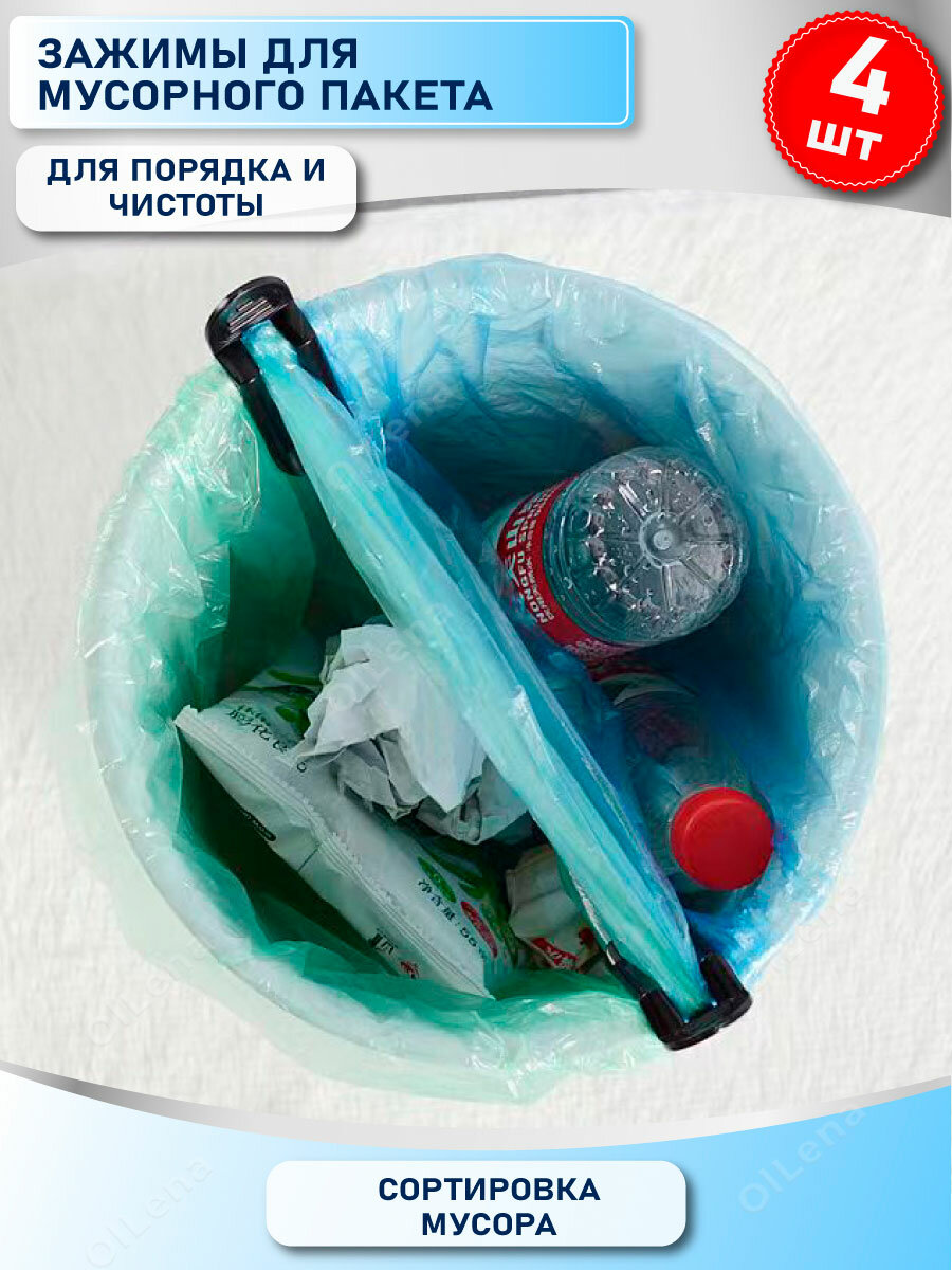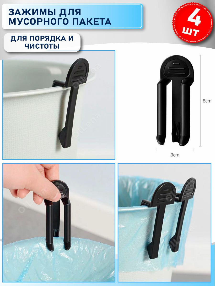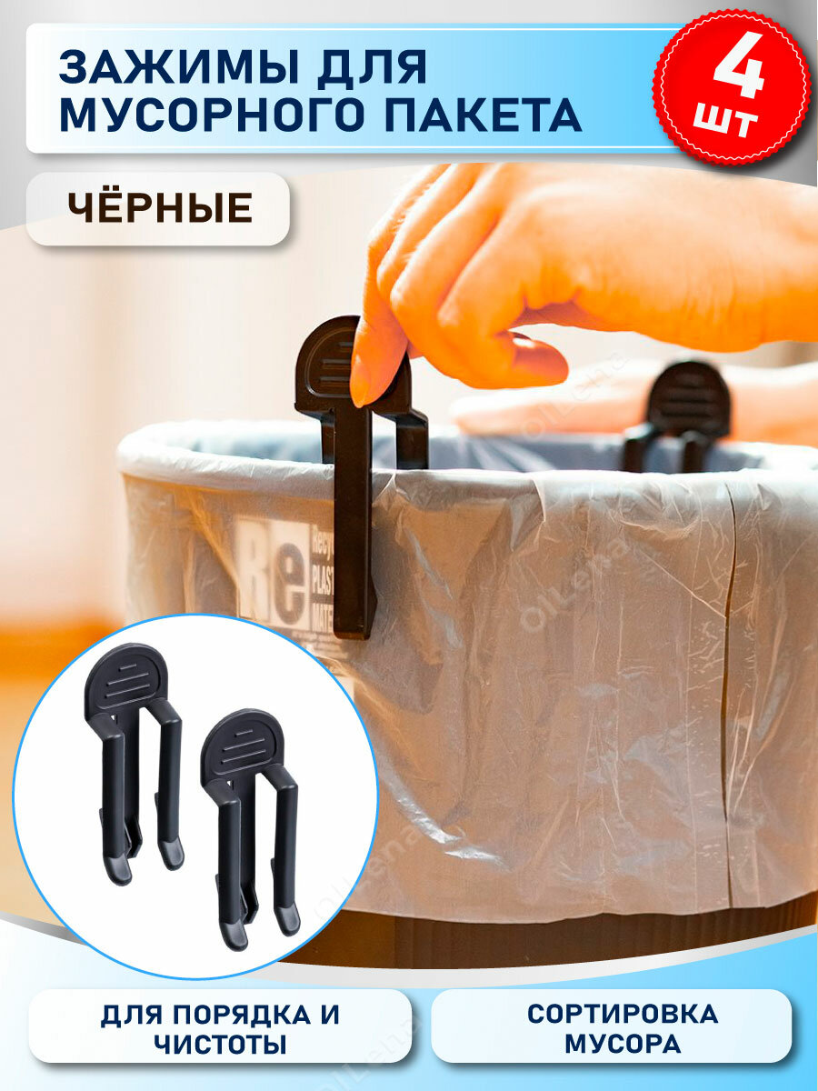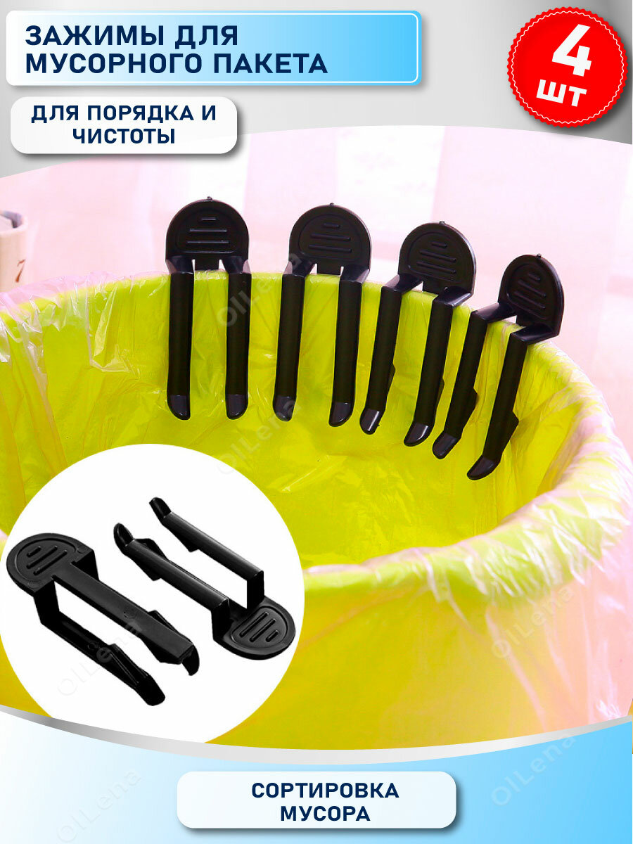 OlLena / Набор фиксаторов для мусорных пакетов / Зажимы для мусорных мешков, 4 шт, черные интересное: