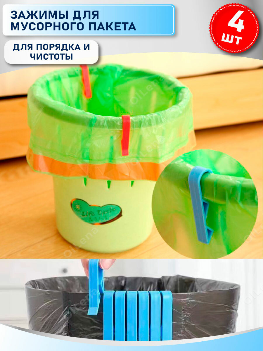 OlLena / Набор фиксаторов для мусорных пакетов / Зажимы для мусорных мешков, 4 шт, голубые