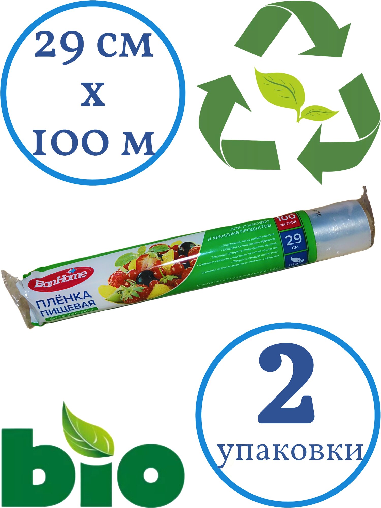 Пленка пищевая биоразлагаемая "BonHome" 100 м, ширина 29см, 2 рулона интересное: