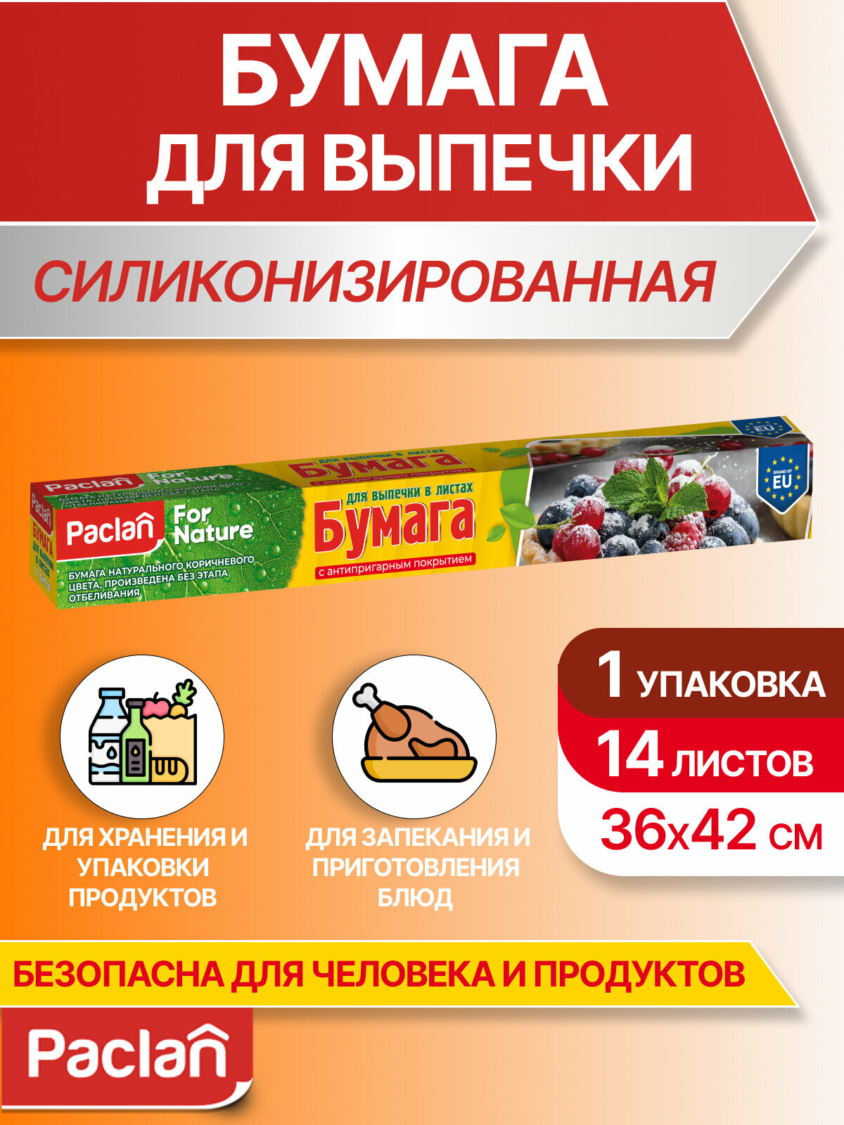 Бумага для выпечки в листах Paclan, 1 упаковка, 14 листов, 38 х 42 см интересное: