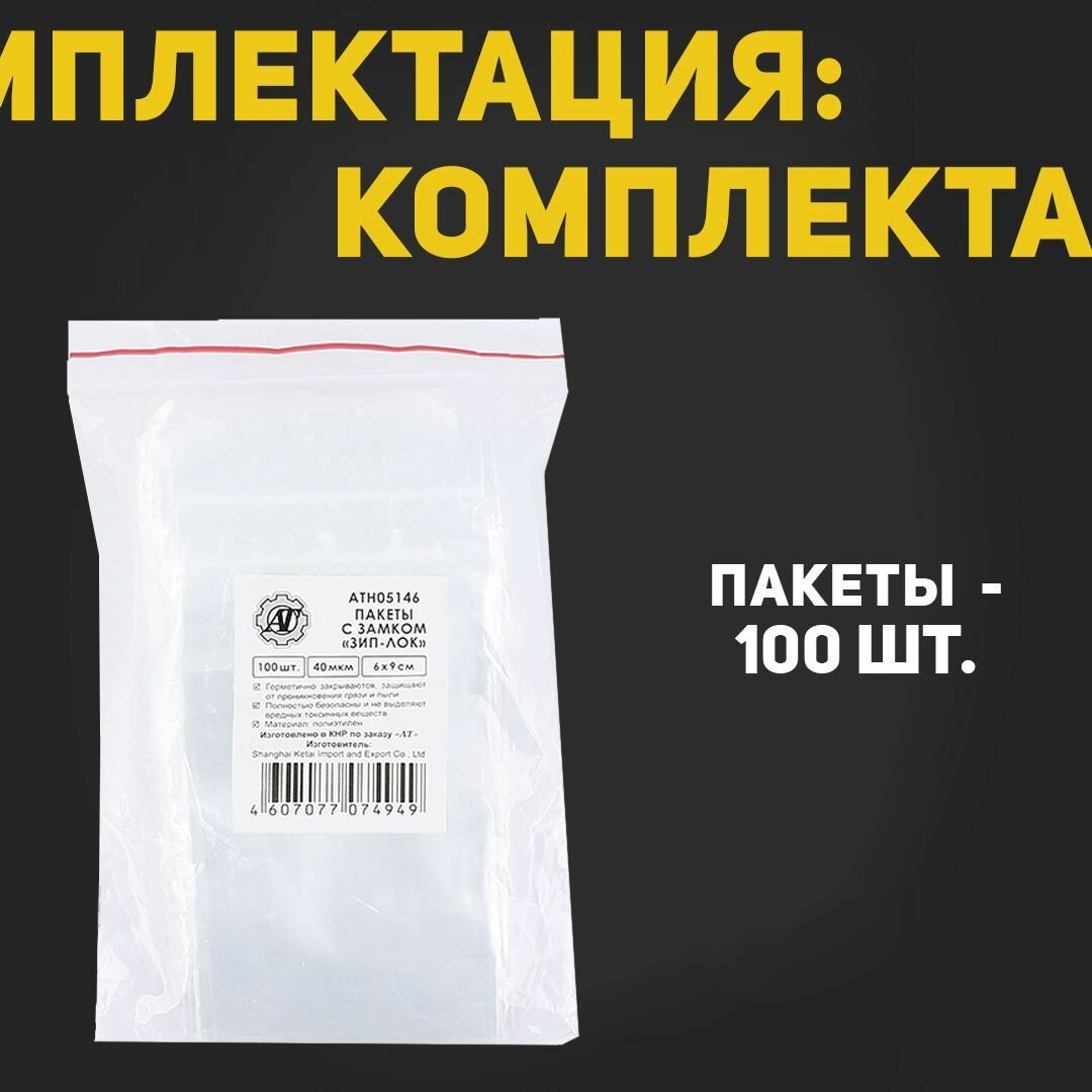 Пакеты упаковочные AT 6х9 см с застёжкой Zip Lock, 100 штук, толщина 40 мкм, прозрачные интересное: